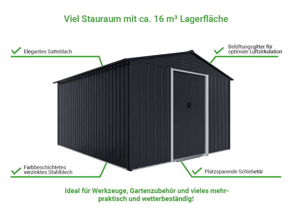 Compact et pratique – cet abri à outils offre suffisamment d’espace de rangement sans occuper beaucoup de place dans votre jardin. Vous pouvez ainsi stocker vos outils en toute sécurité et les protéger des intempéries et des vols. Cette petite cabane est fabriquée en métal galvanisé, ce qui la rend particulièrement durable et robuste.