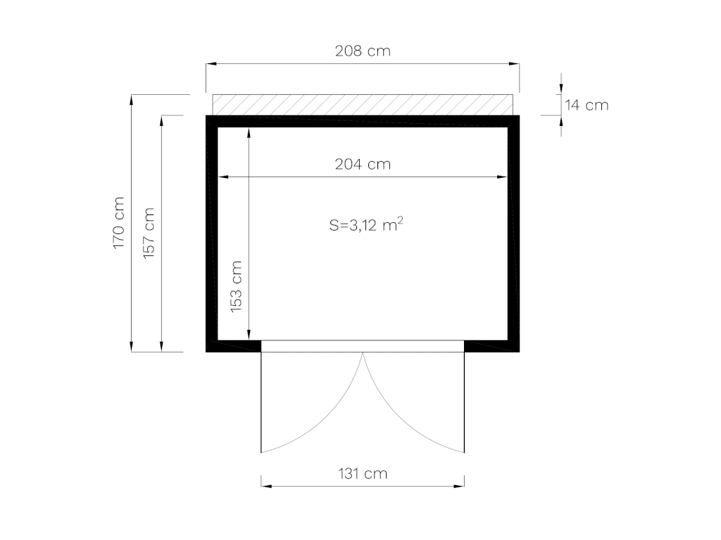 Cet abri a une surface au sol de 3,12 m². Lespace peut être utilisé de manière optimale grâce à une hauteur de faîtage de 208 cm.
