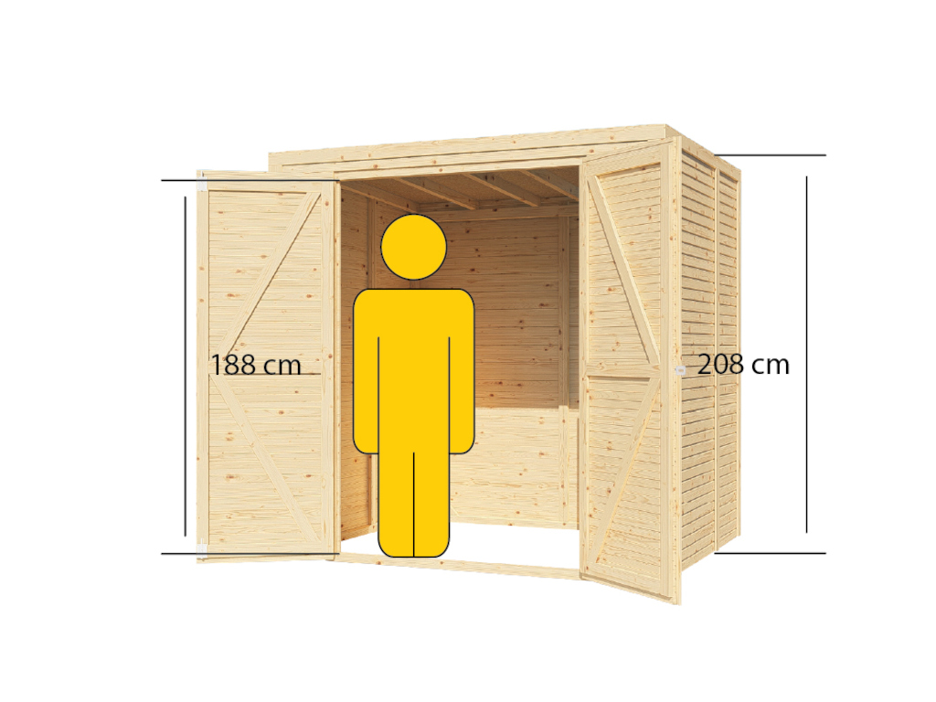 L x P x H : 208 x 157 x 208 cm, Hauteur de passage de la porte : 187 cm