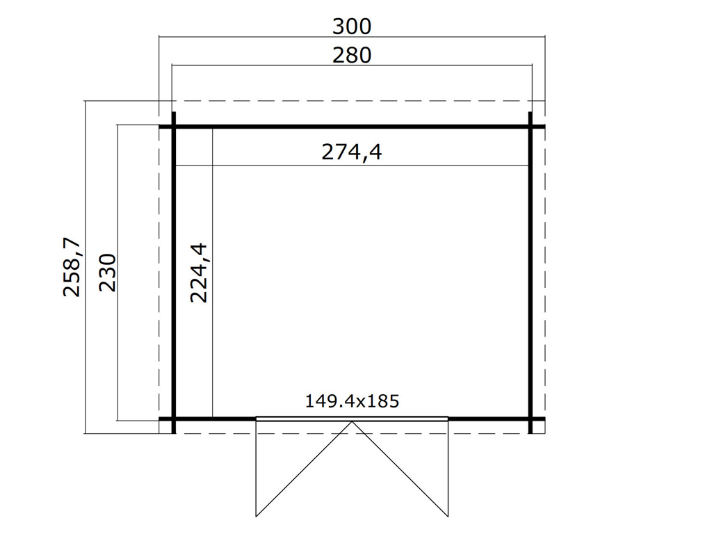 | Dimensions extérieures avec débord de toit (l x P): | 300 x 259 cm |