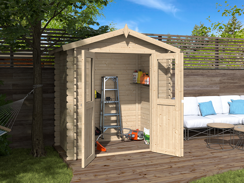 Le bois naturel donne un aspect naturel et intemporel. De plus, le bois non traité vous permet de personnaliser l’extérieur de l’abri de jardin selon vos envies.