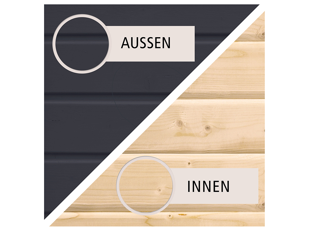 Les murs extérieurs de l’abris de jardin sont déjà scellés par une lasure de protection du bois de couleur anthracite et le protègent d’emblée des parasites et des intempéries. - Montage rapide et simple