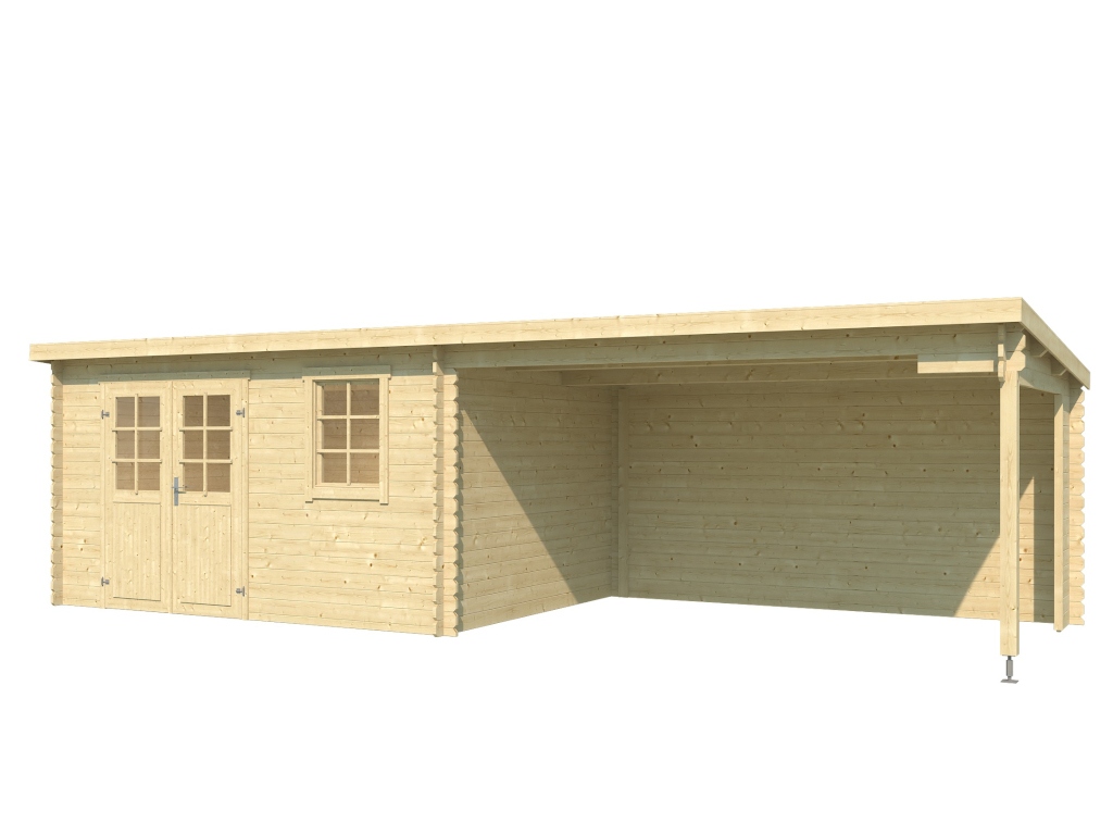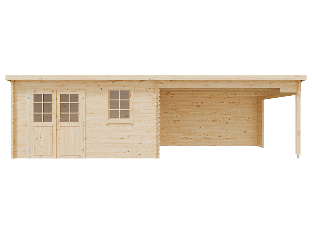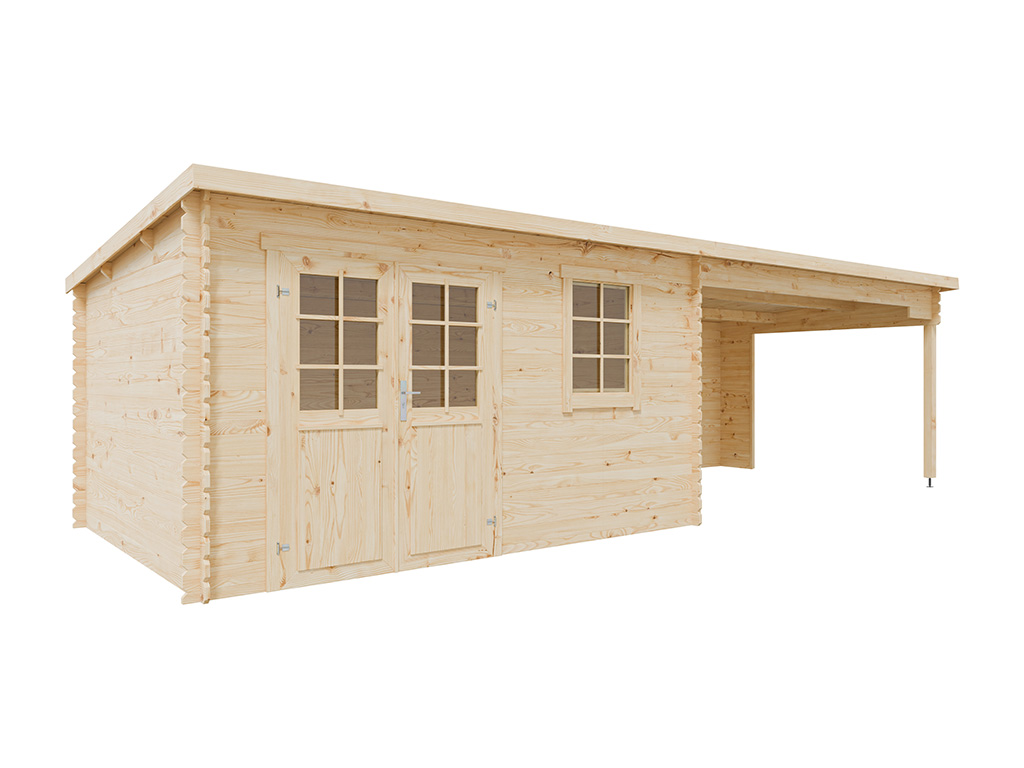 Abri de jardin en bois Aida 800 28 mm naturel avec auvent de 3,8 m