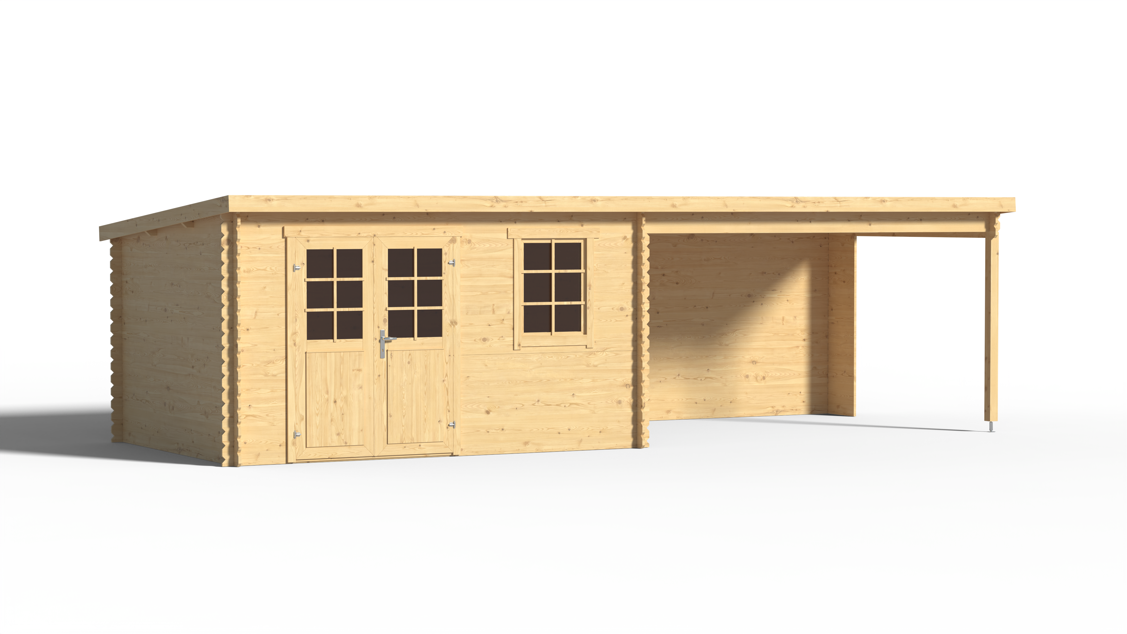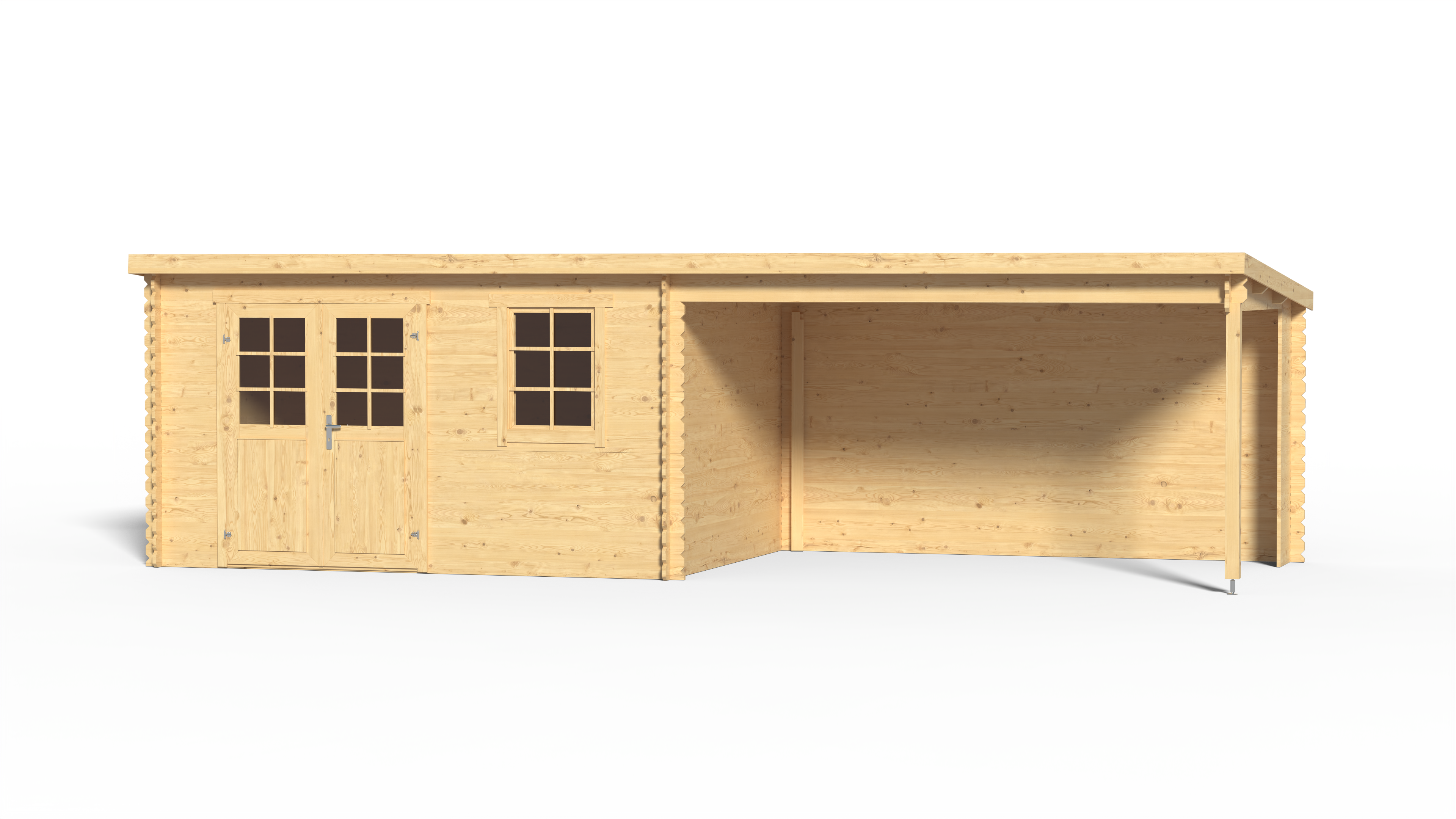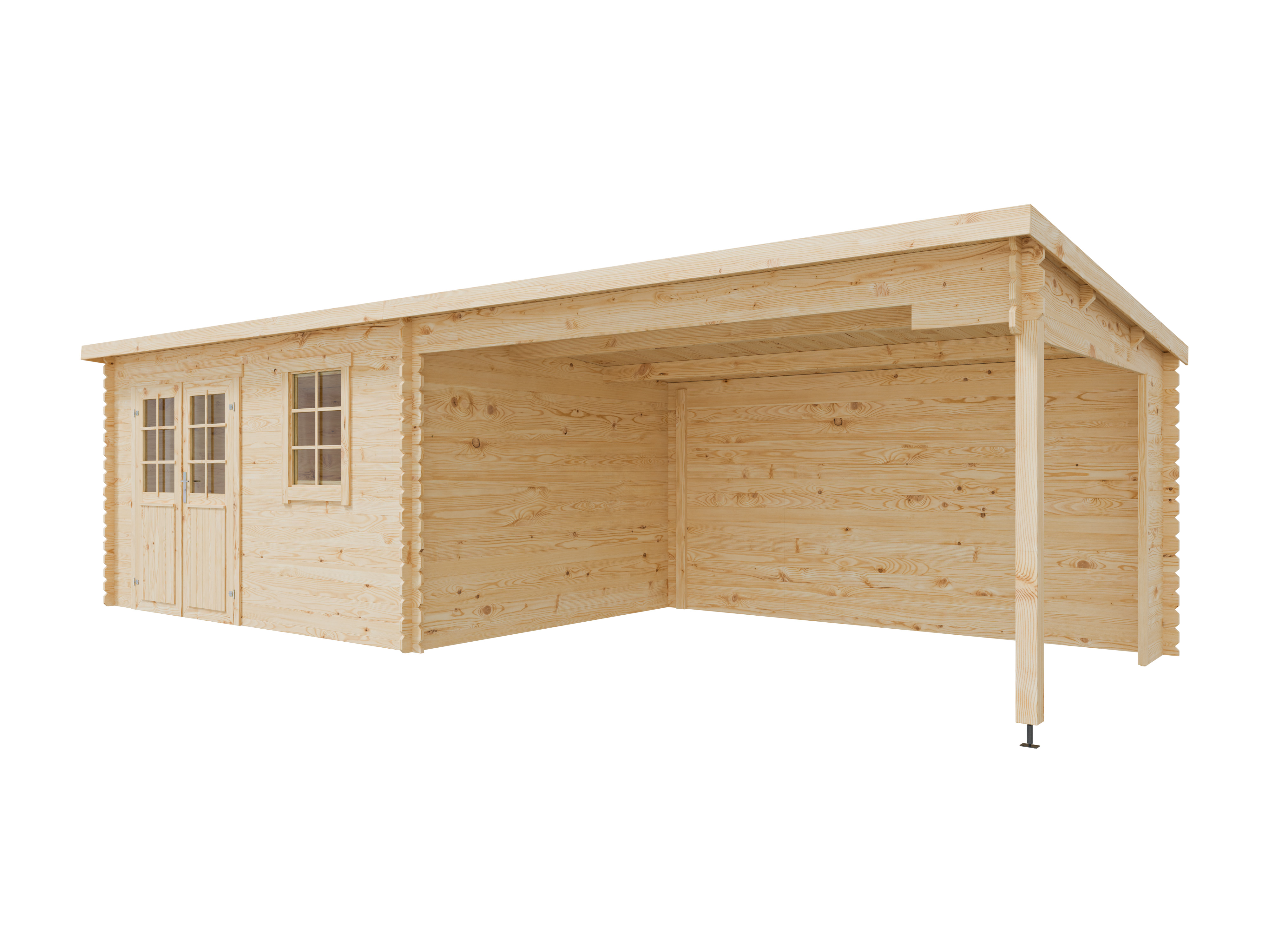 Abri de jardin en bois Aida 800 28 mm naturel avec auvent de 3,8 m