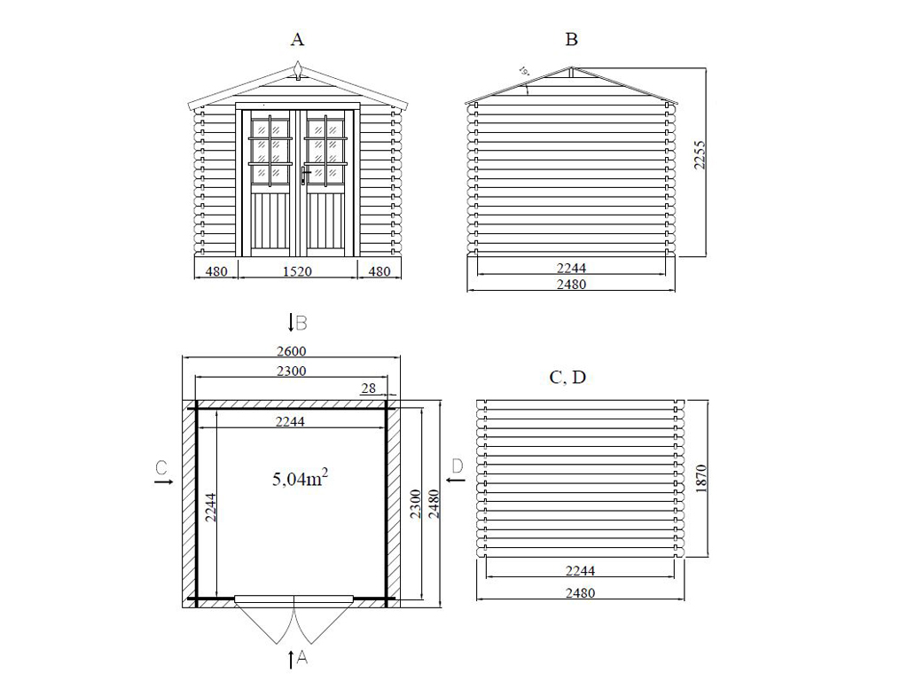Dimensions extérieures avec débord de toit (l x P): 260 x 248 cm