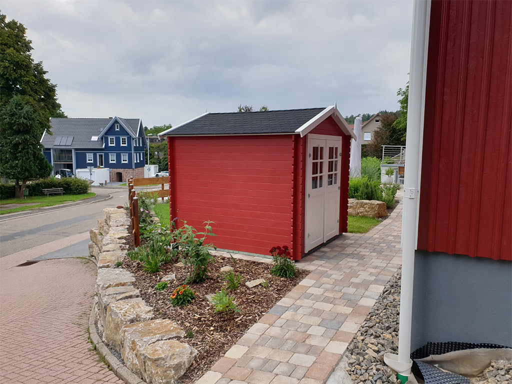 La maison de jardin correspond à notre conception. La livraison était à l'heure et l'emballage était étanche ! Deux personnes suffisent pour la mise en place et durent environ un an. 6 heures. Ce que je regretterais, c'est que le fournisseur ait déjà inclus les cartons de toit dans son offre et que je ne doive pas acheter en plus. J'ai malheureusement oublié ça lors de l'achat. Ce n'est pas grave.