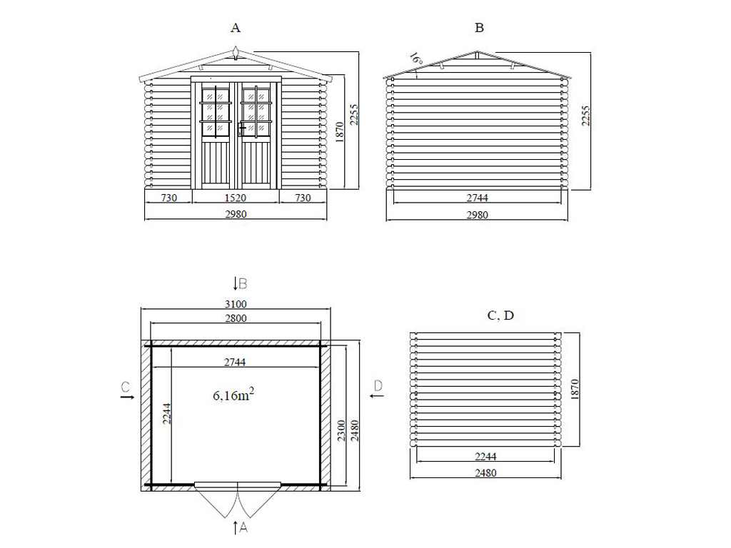 Dimensions extérieures avec débord de toit (l x P): 310 x 248 cm