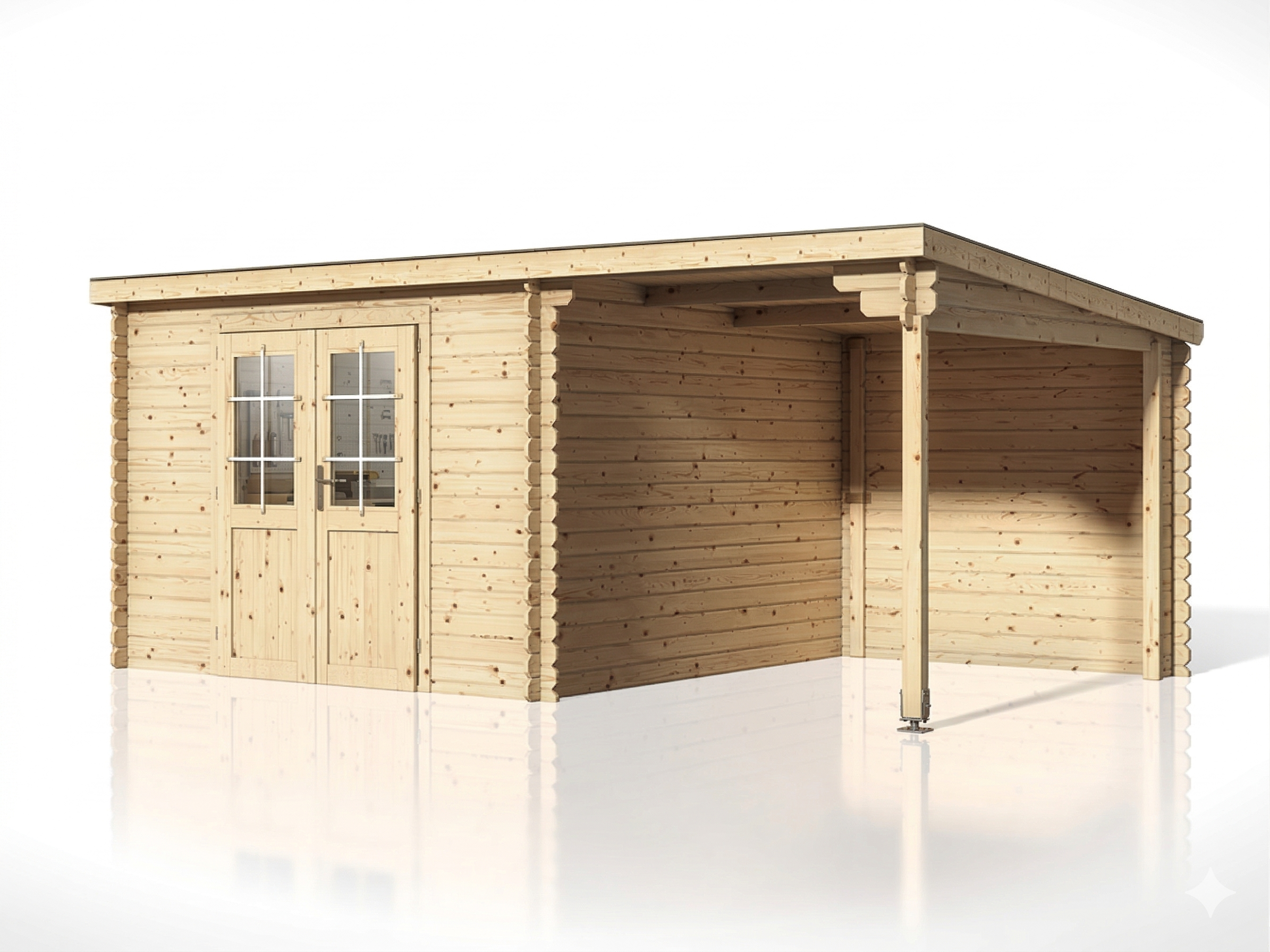 Abri de jardin en bois CA2976 28 mm naturel avec auvent de 2 m