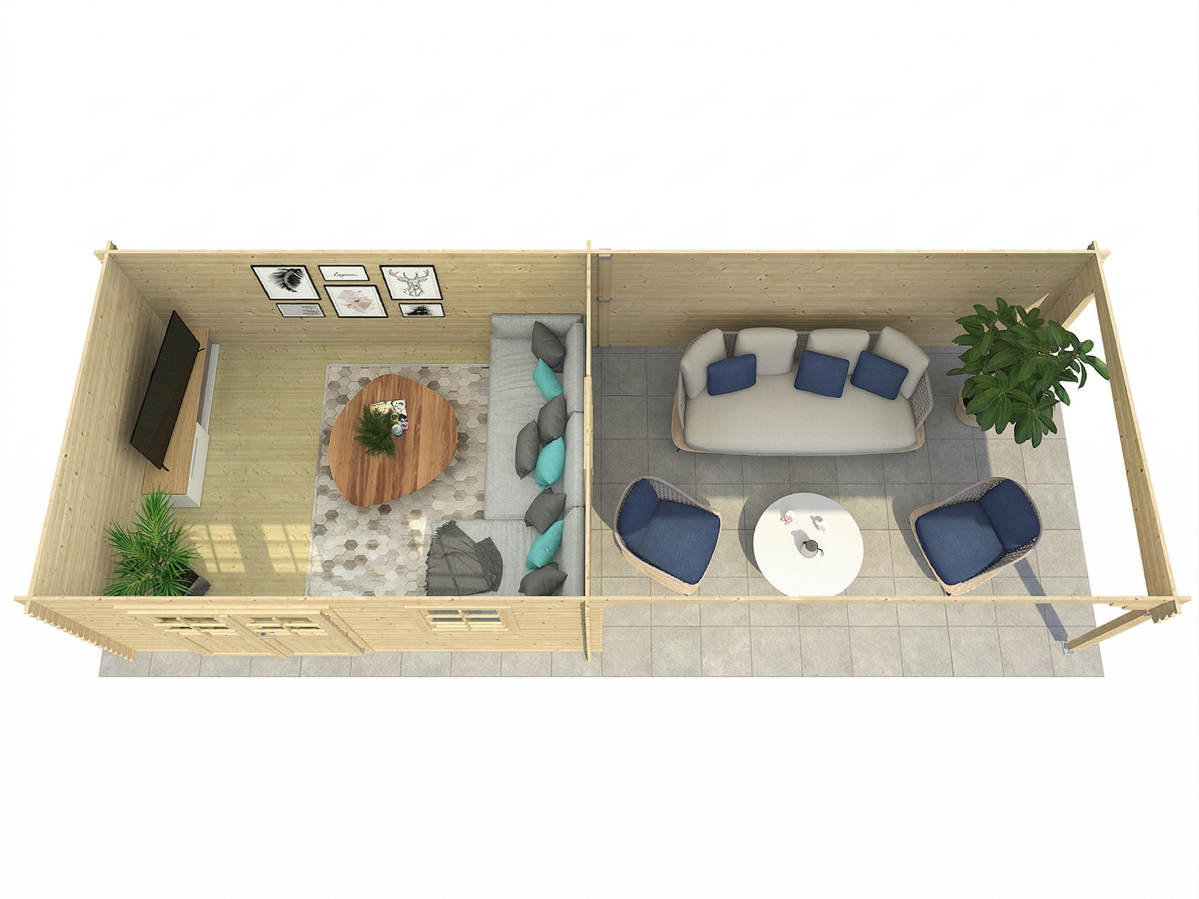 L x P x H: 796 x 309 x 204 cm, Dimensions du socle de la maison: L x P: 398 x 298 cm, y compris 2 fenêtres + 400 cm d'extension