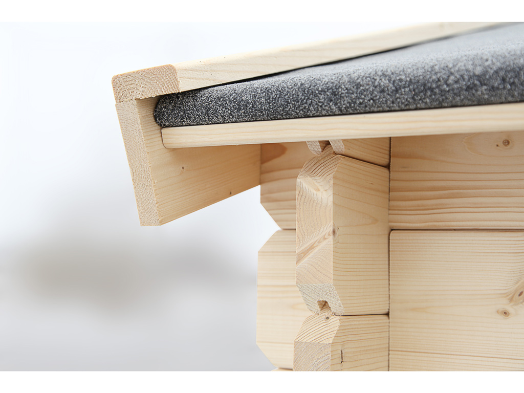 Cet abri de jardin de haute qualité en épicéa nordique sélectionné se caractérise par ses madriers de 28 mm d'épaisseur parfaitement ajustés avec un assemblage de type chalet. L'assemblage d'angle traditionnel rend l'abri de jardin totalement étanche au vent et à l'eau. Le bois naturel donne un aspect naturel et moderne. - Plinthes anti-tempête incluses