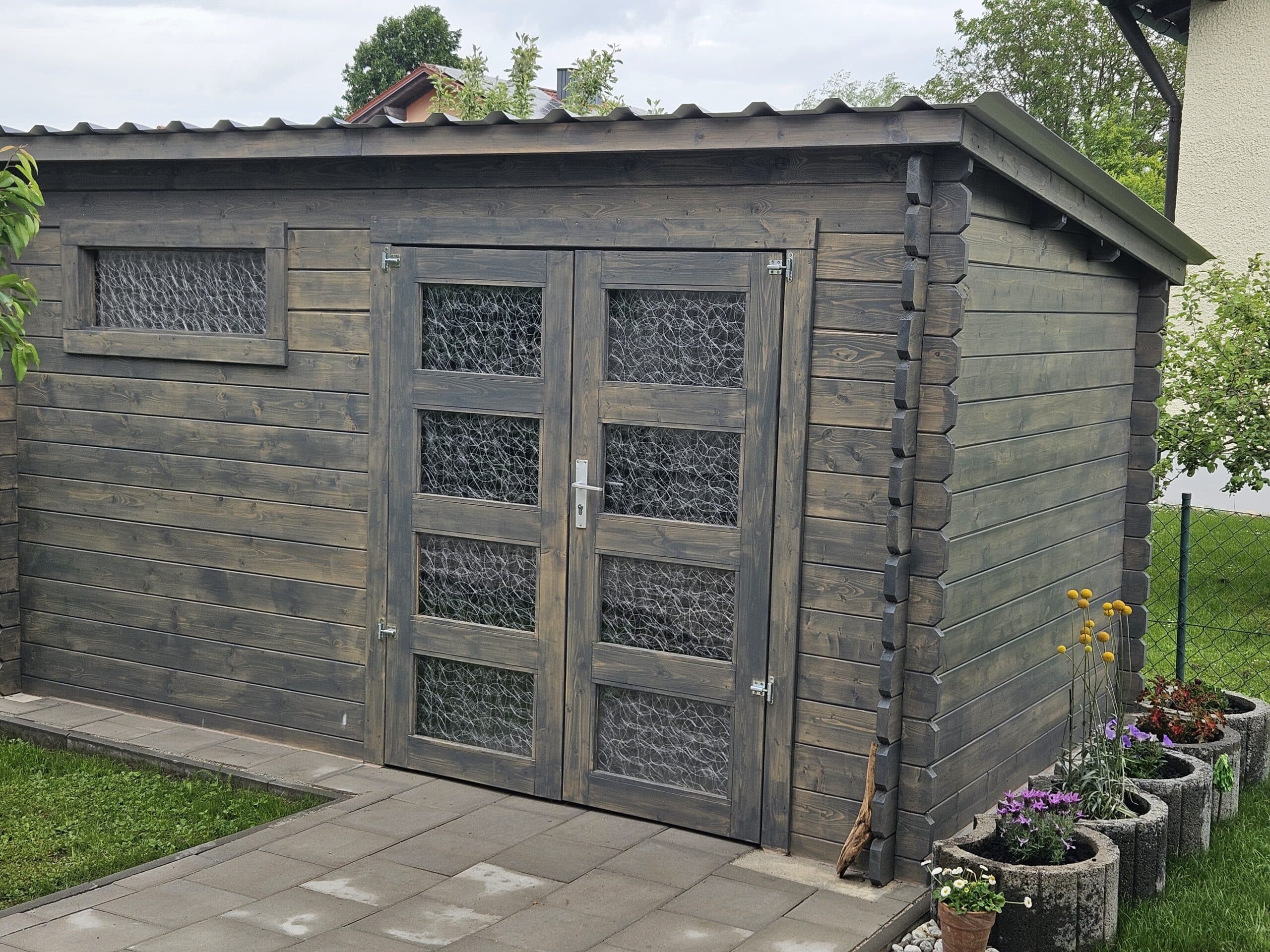 L'abri de jardin se distingue par ses madriers parfaitement ajustés. L'assemblage d'angle traditionnel permet une stabilité particulièrement élevée. - Montage facile