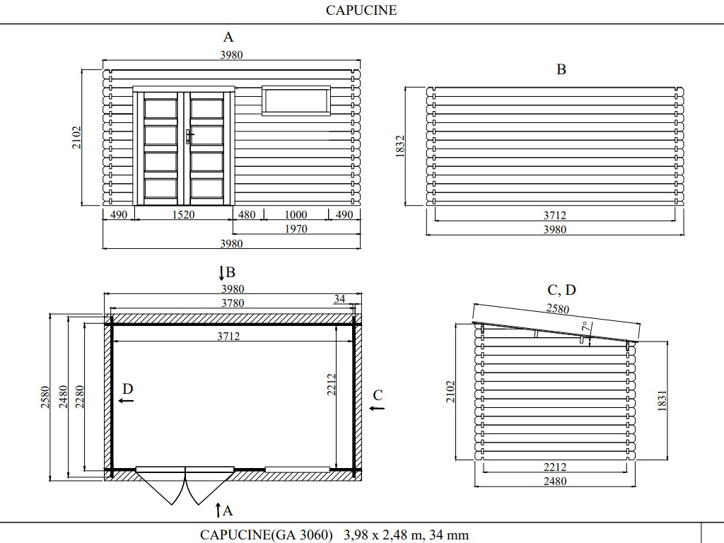 | Pente du toit: | 7° |