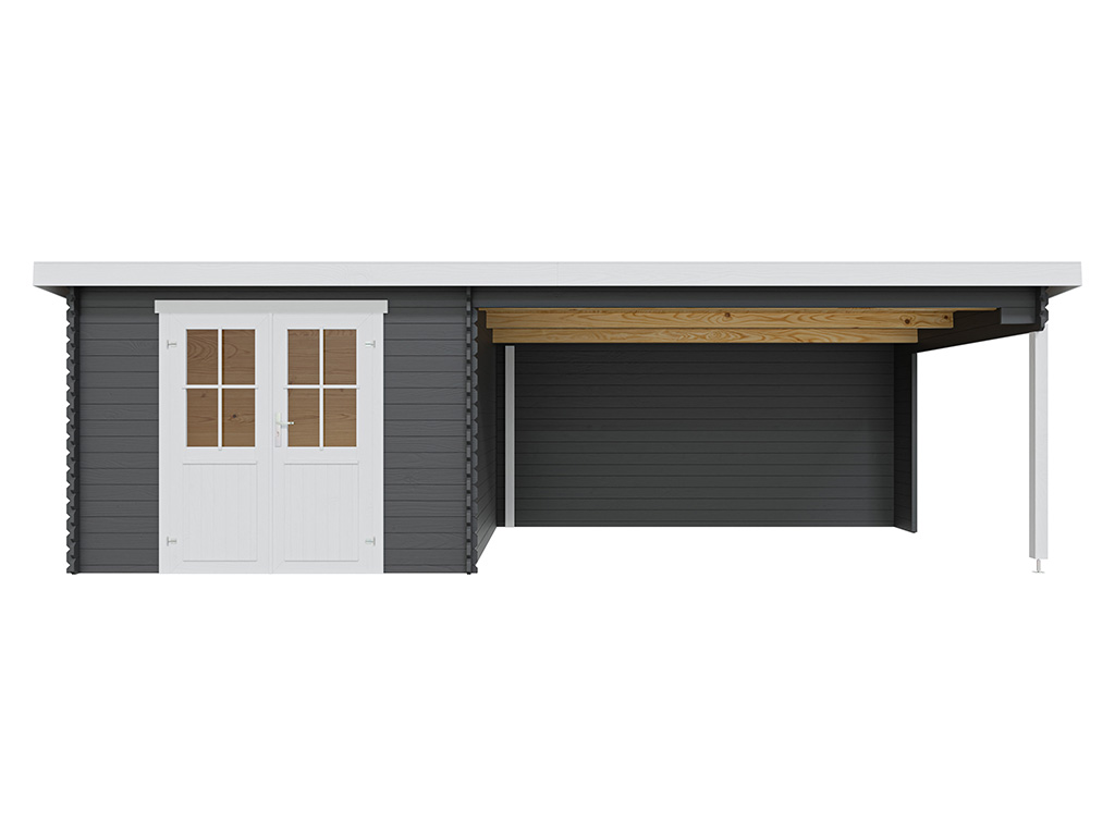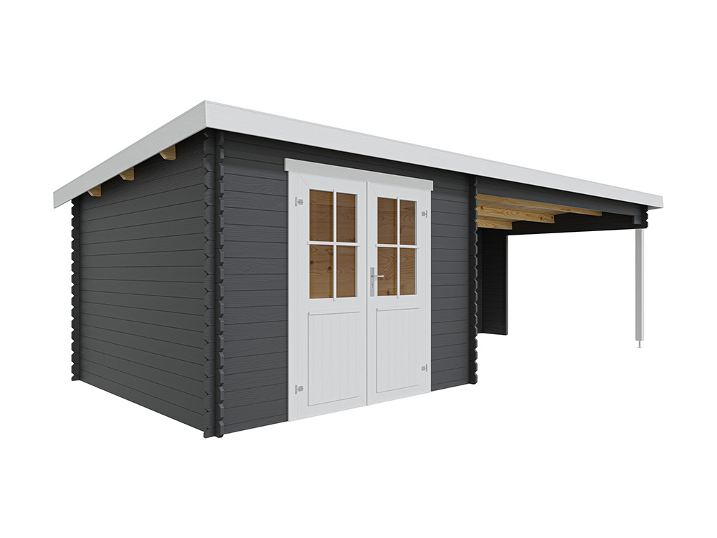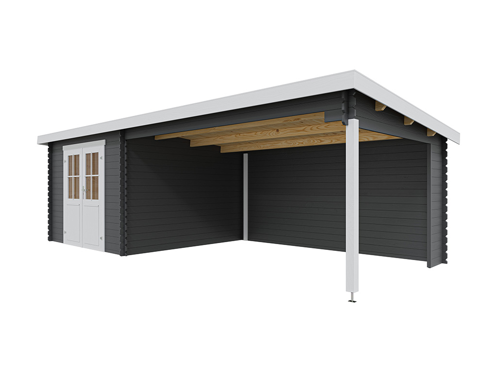 Abri de jardin en rondins Aida 800 28 mm gris carbone avec extension de 3,8 m Abri de jardin en rondins Aida 800 28 mm gris...