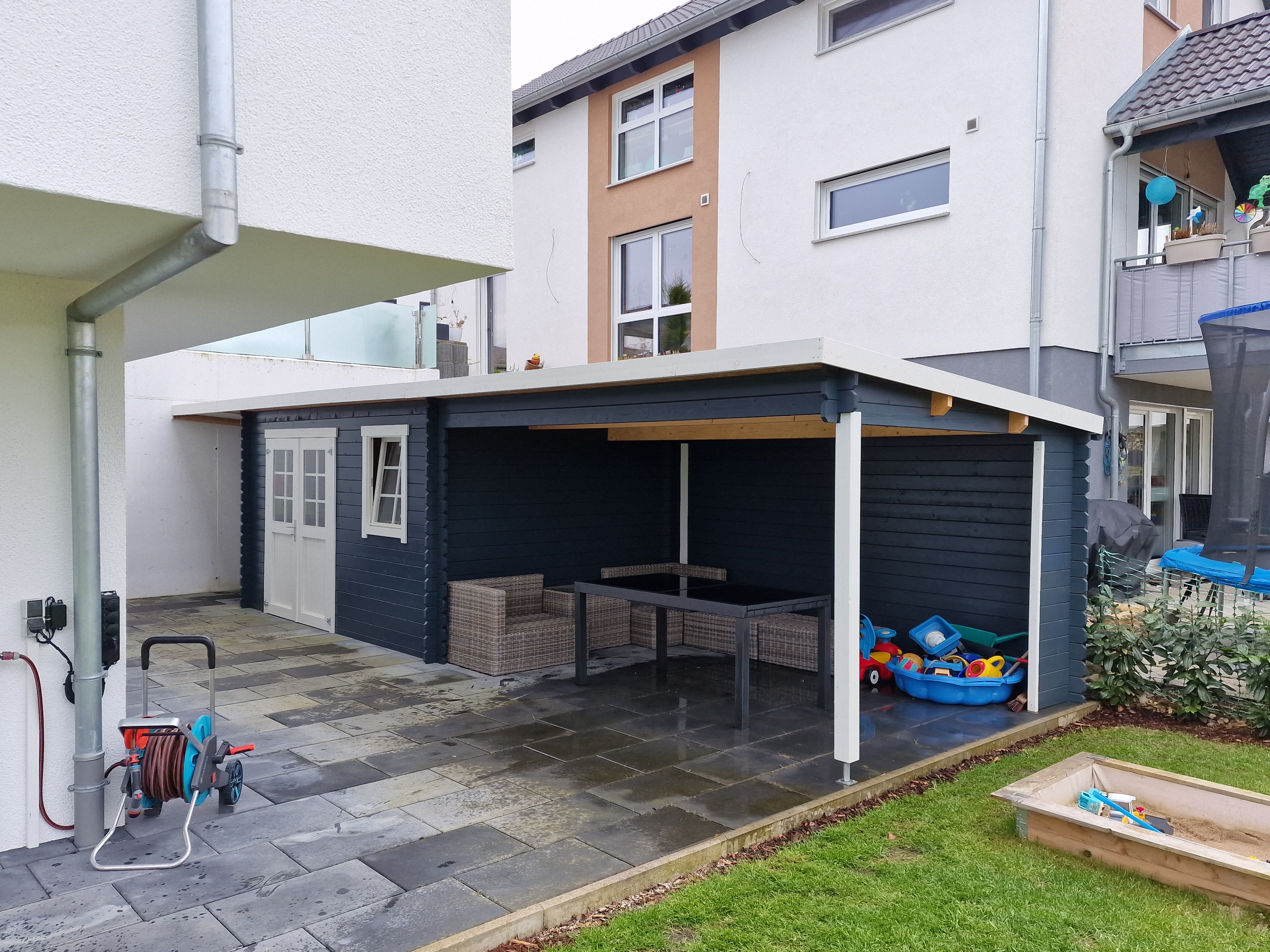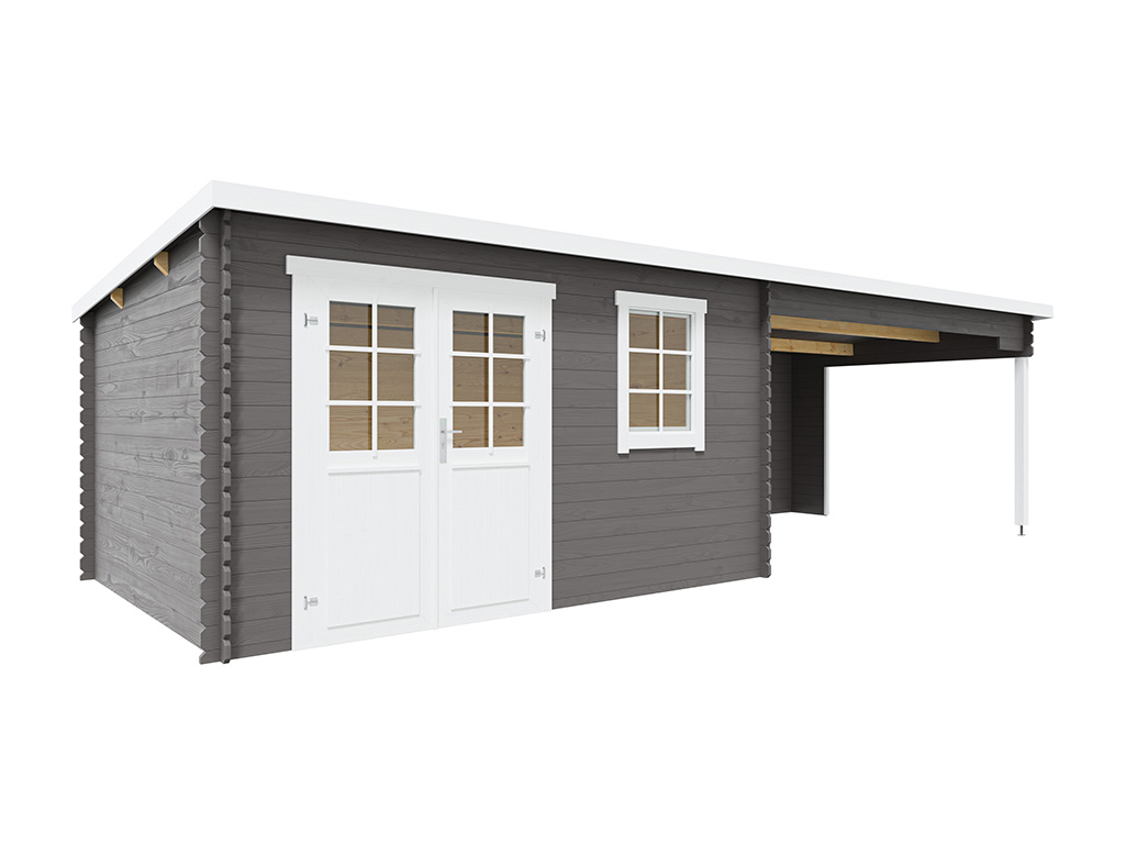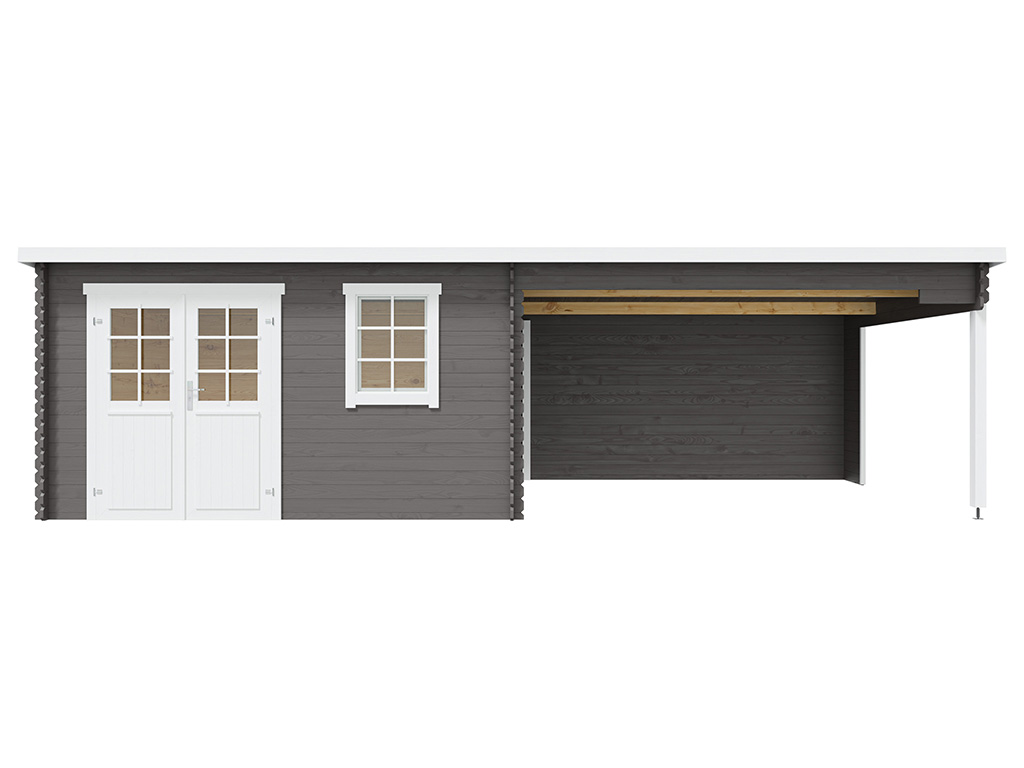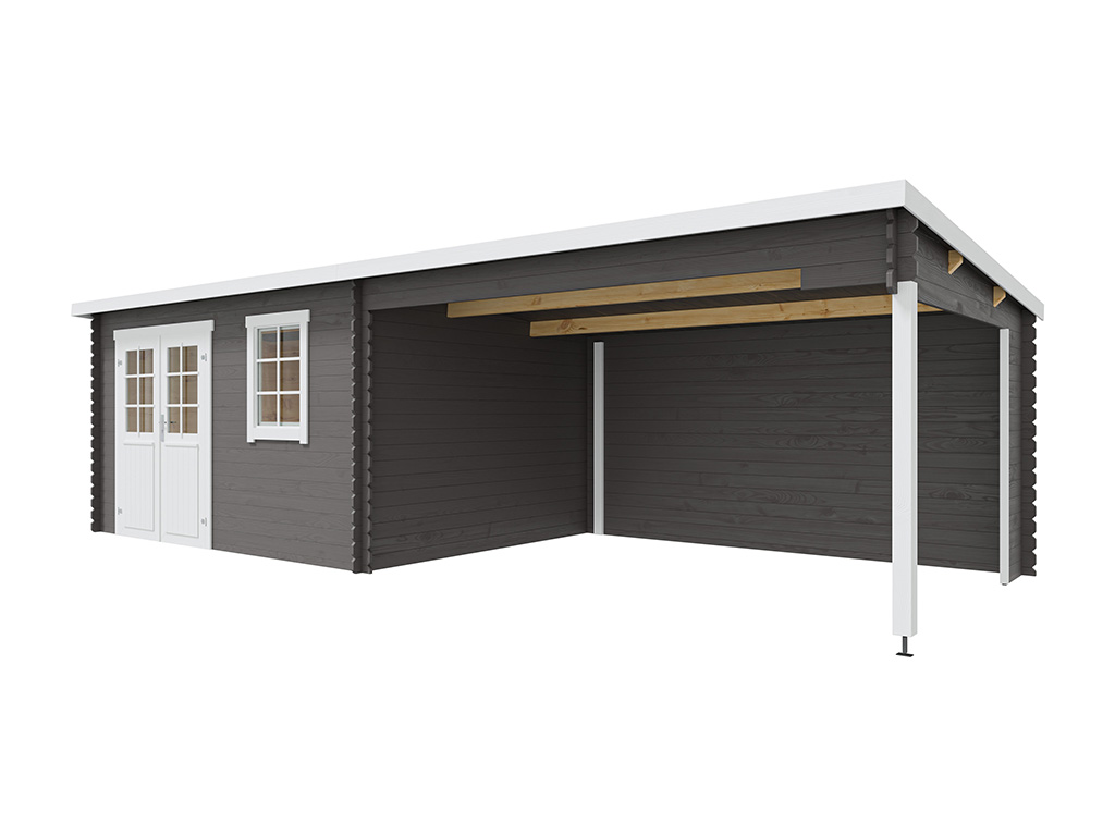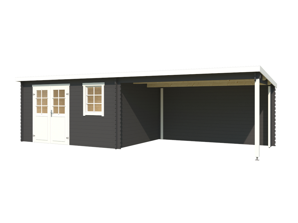 Abri de jardin en rondins Aida 800 28 mm gris carbone avec extension de 3,8 m