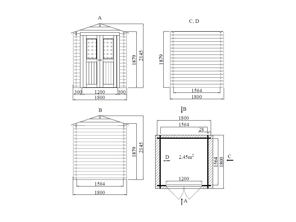 Abri de jardin BBH « Mini 2 B » 28 mm toit en bâtière