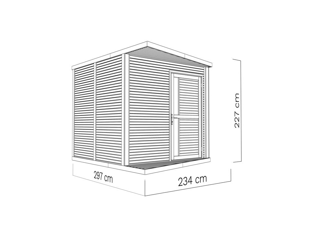 L x P x H : 234 x 303 x 227 cm, dimensions de base de l'abri : 234 x 225 cm, avec plancher