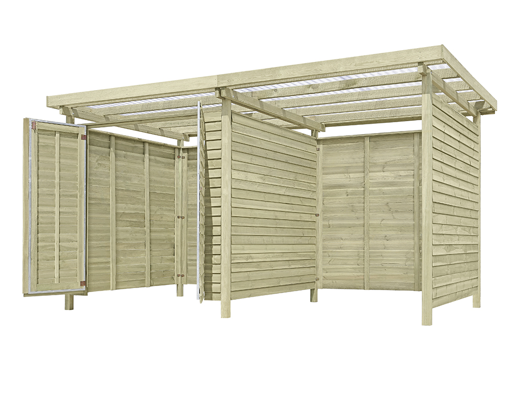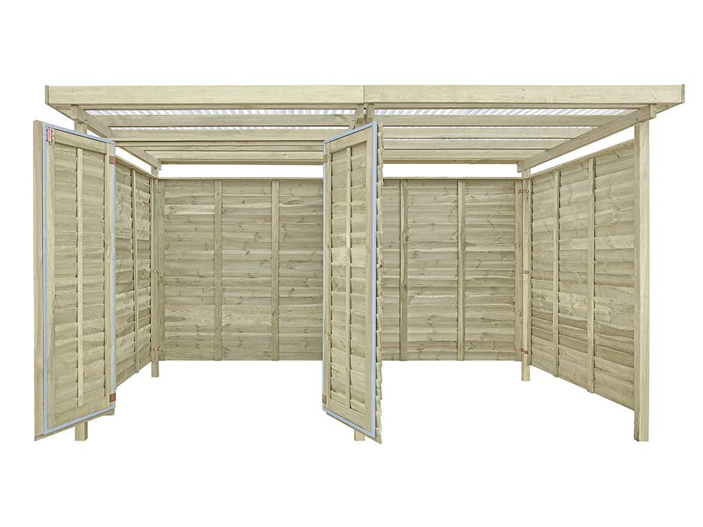 La double porte vous offre suffisamment d'espace pour ranger des objets encombrants. Les éléments en bois sont déjà montés sur le cadre en acier à l'arrière. - Toit allongé inclus