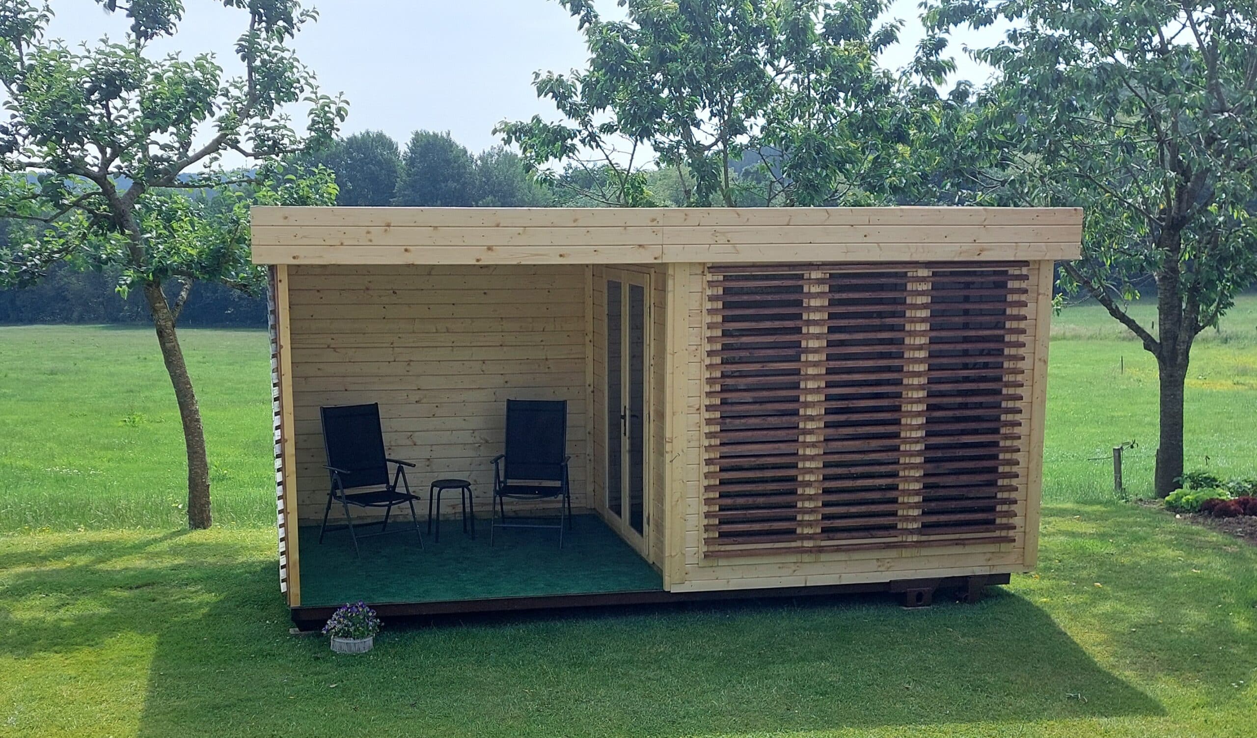 L'abri de jardin est équipé d'une grande baie vitrée en verre antisolaire bronzé qui, avec sa grande façade à lamelles, réduit le réchauffement de la pièce en cas de fort ensoleillement. - Montage facile