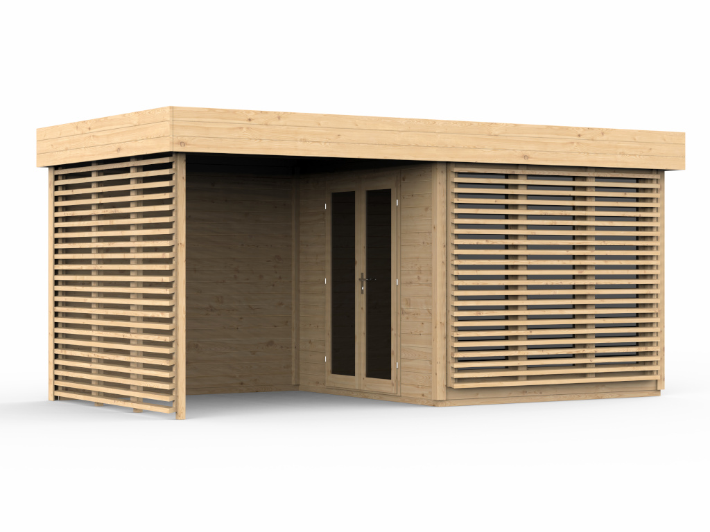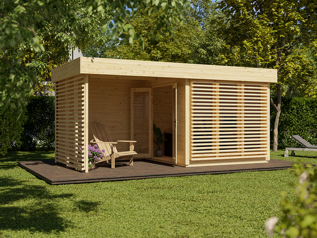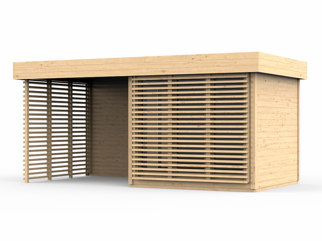 Abri de jardin Homeoffice Ivar 28 mm naturel avec extension 264 cm
