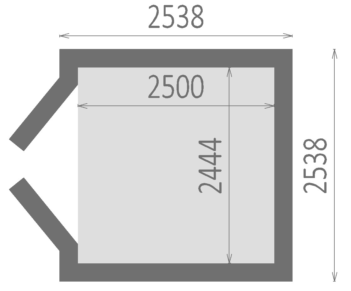| Dimension intérieure de la maison / de la plus grande pièce (L x P cm): | 244,4 x 250 cm |