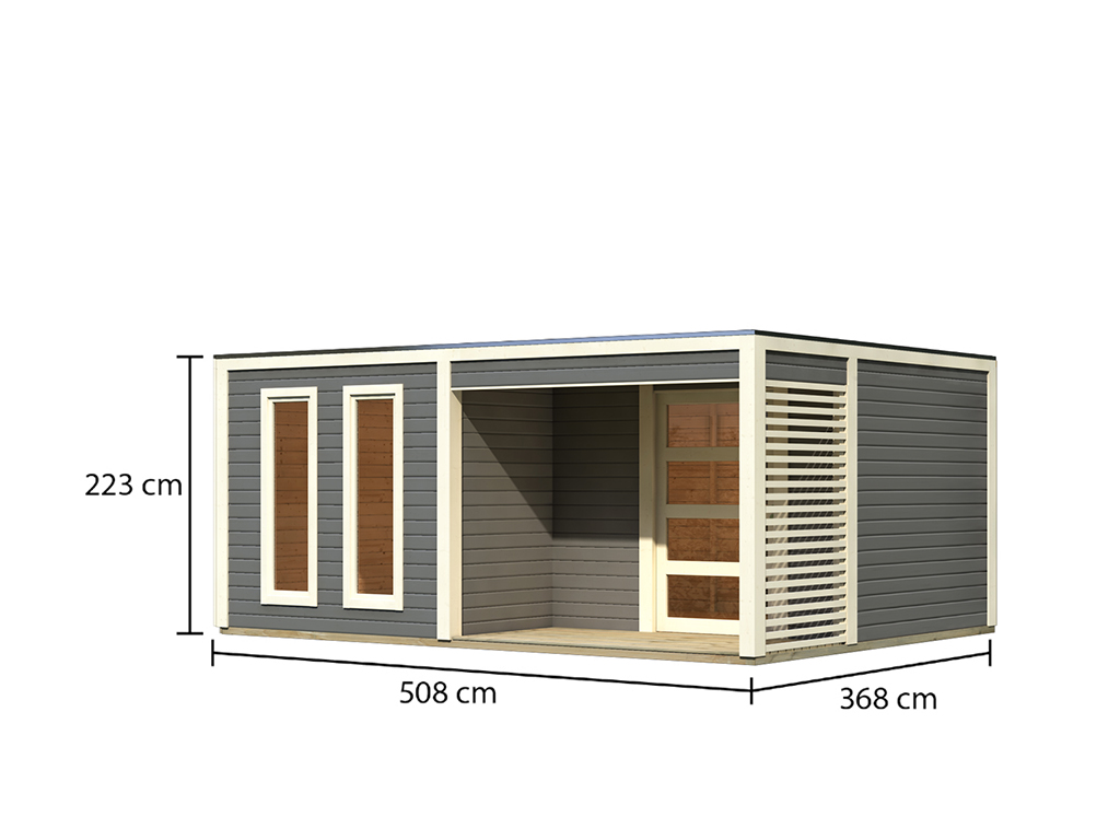 | Dimensions extérieures avec débord de toit (l x P): | 508 x 368 cm |