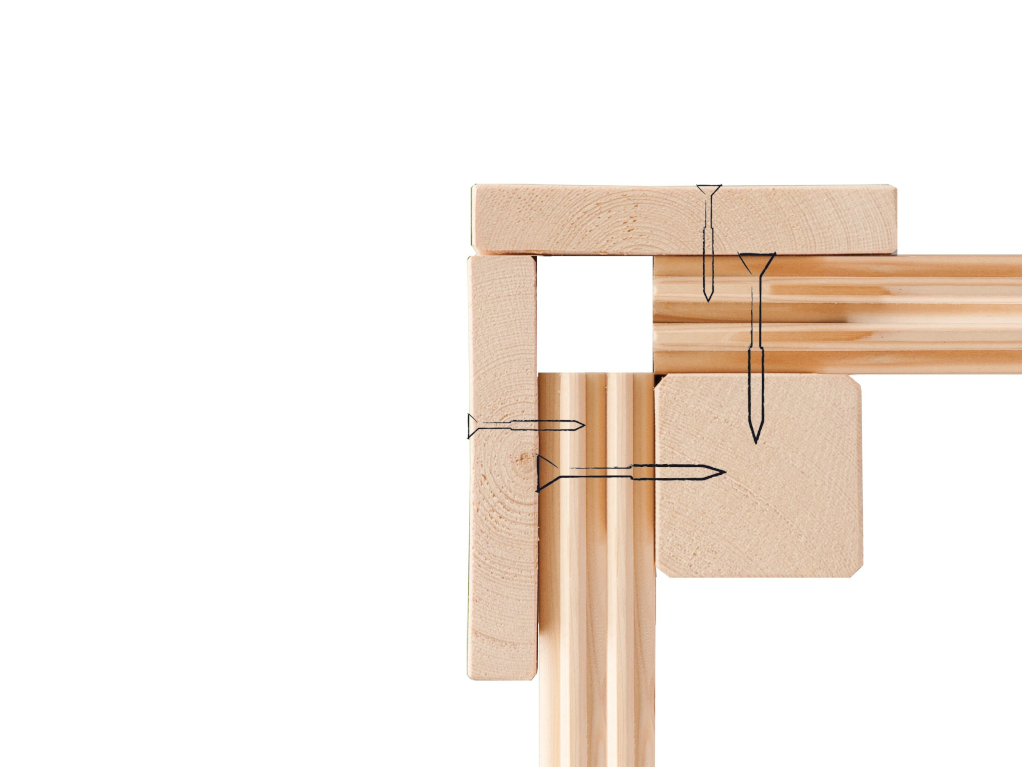 L'abri de jardin est monté selon un système d'emboîtement/de vissage qui permet un montage simple et rapide. Les coins des rondins sont cachés par des moulures placées de chant qui protègent les bords de la maison et les têtes de clous des intempéries. - Prétraité en couleur
