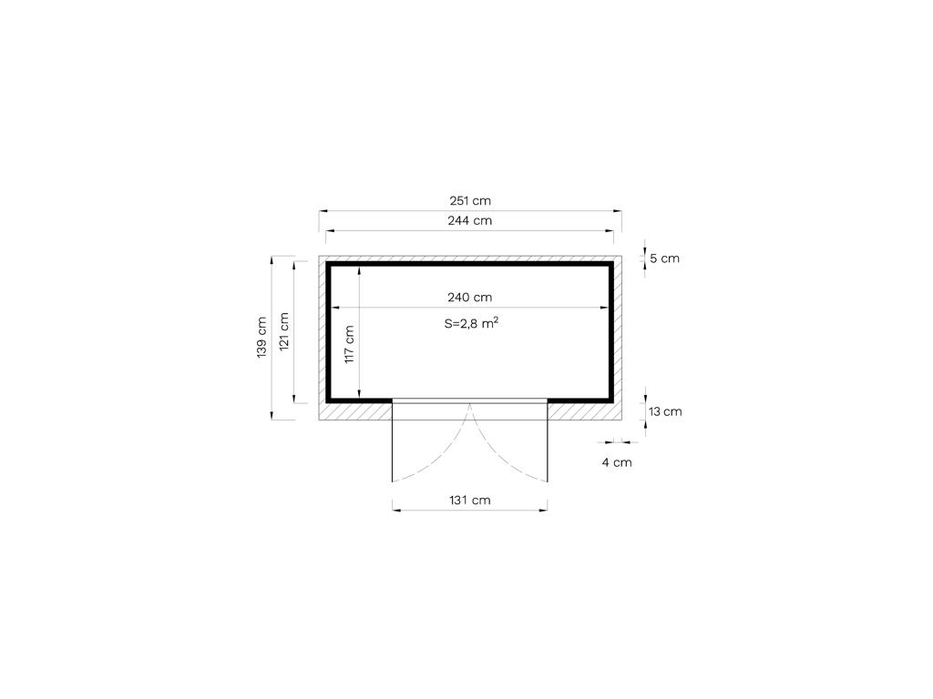 Dimensions extérieures (L x P x H) : 251 x 139 x 211 cm, dimensions de base : 244 x 121 cm, plancher avec.