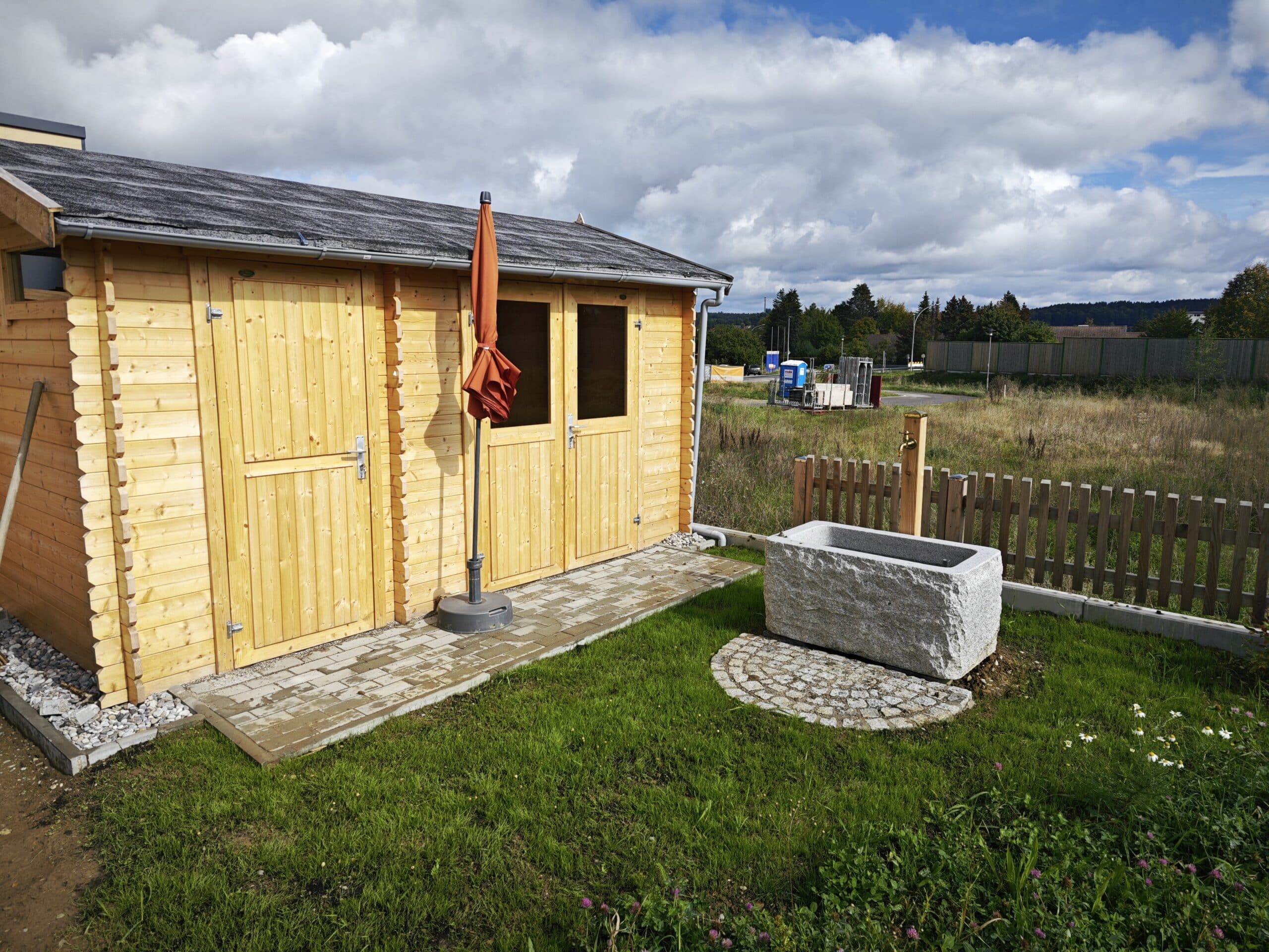 Abri de jardin en bois St. Louis Exklusiv 28 mm avec 4 m d'extension Abri de jardin en bois St. Louis Exklusiv 28 mm...