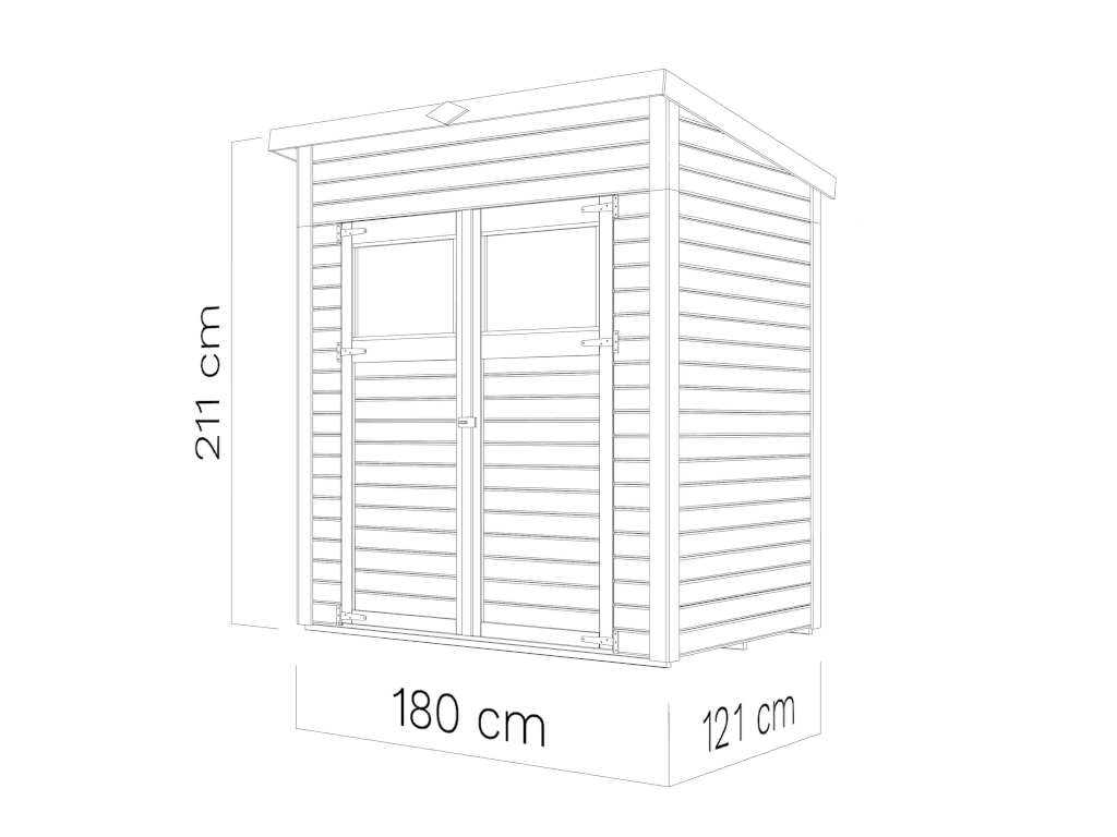 Cet abri a une surface au sol de 2,16 m². Lespace peut être utilisé de manière optimale grâce à une hauteur de faîtage de 211 cm.