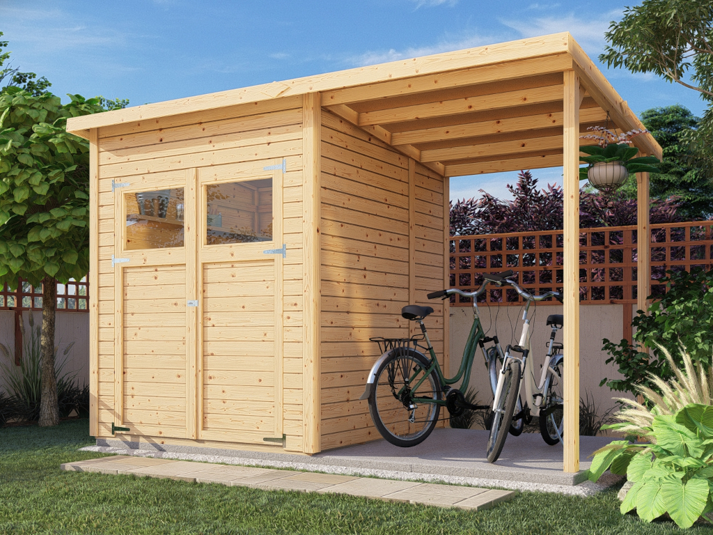 Abri de jardin Livo 2 28 mm naturel avec extension de 264 cm Abri de jardin Livo 2 28 mm naturel avec...