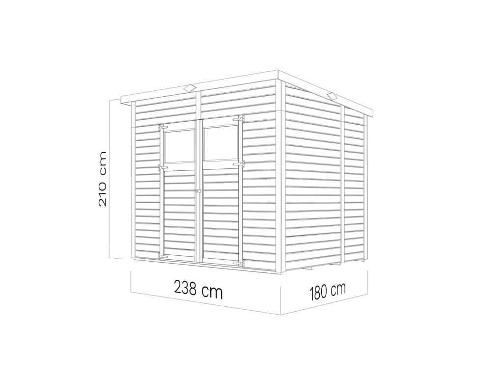 | Dimensions du socle de l'abris, annexes incluses (l x P): | 238 × 180 cm |