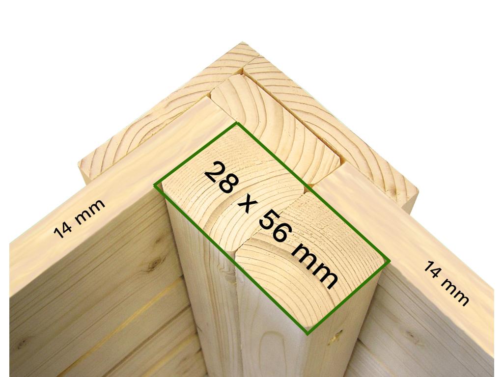 - Les éléments du plancher, y compris le cadre des éléments, doivent être traités avec un produit de protection du bois adapté avant le montage. Pour protéger le sol de l'humidité ascendante, utilisez des bandes de film ou des pads en granulés. Évitez l'eau stagnante.