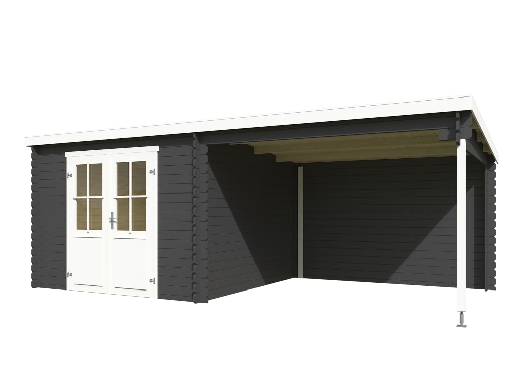 Abri de jardin en rondins Aida 800 28 mm gris carbone avec extension de 3,8 m Abri de jardin en rondins Aida 800 28 mm gris...