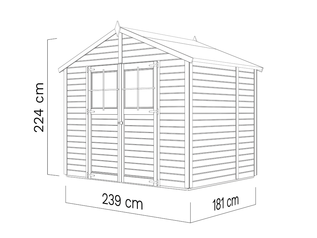 Cet abri a une surface au sol de 4,33 m². Lespace peut être utilisé de manière optimale grâce à une hauteur de faîtage de 223 cm.