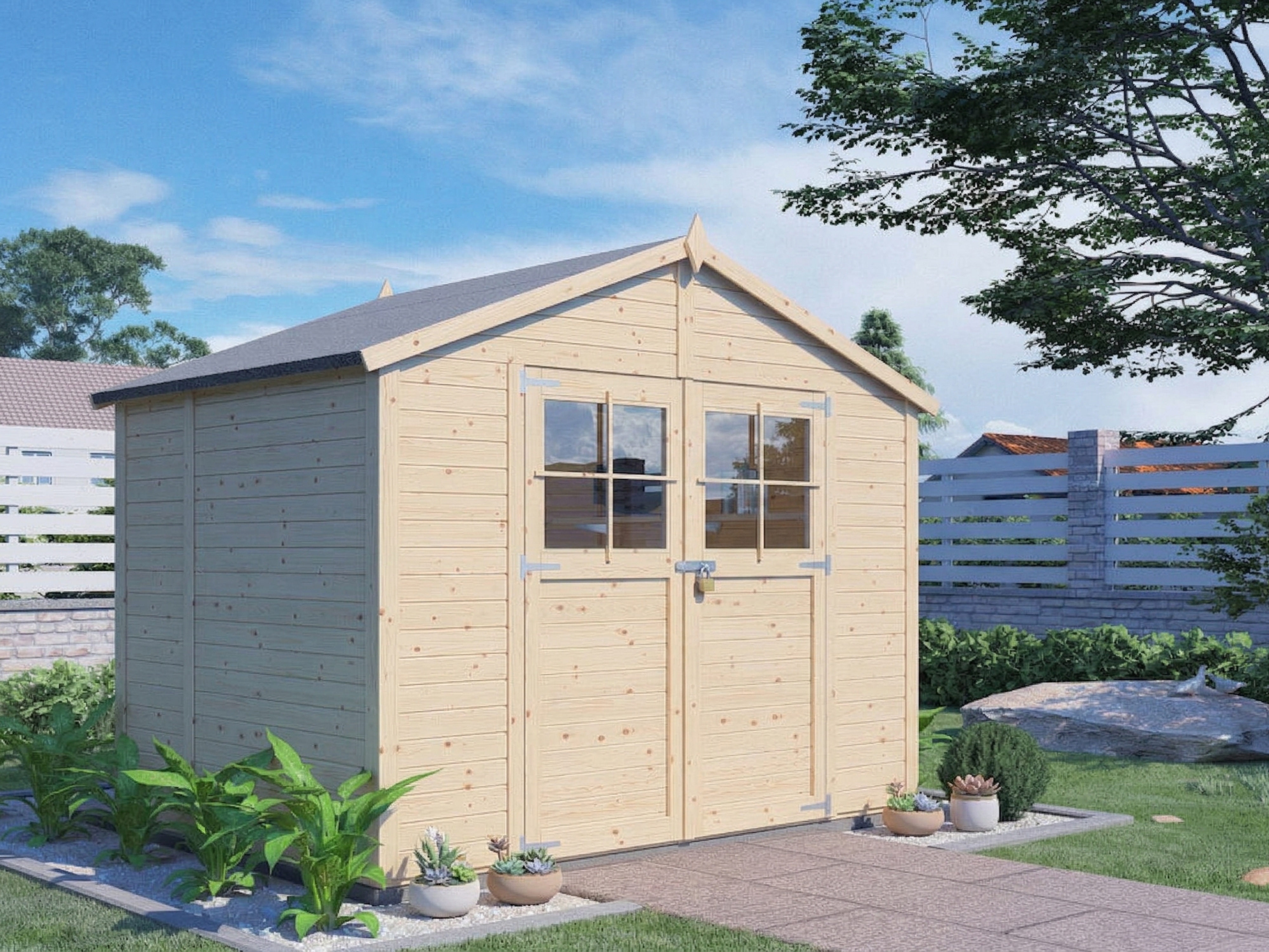 Le bois non traité donne un aspect naturel et intemporel et vous permet en plus darranger lextérieur de labri de jardin selon vos propres souhaits.