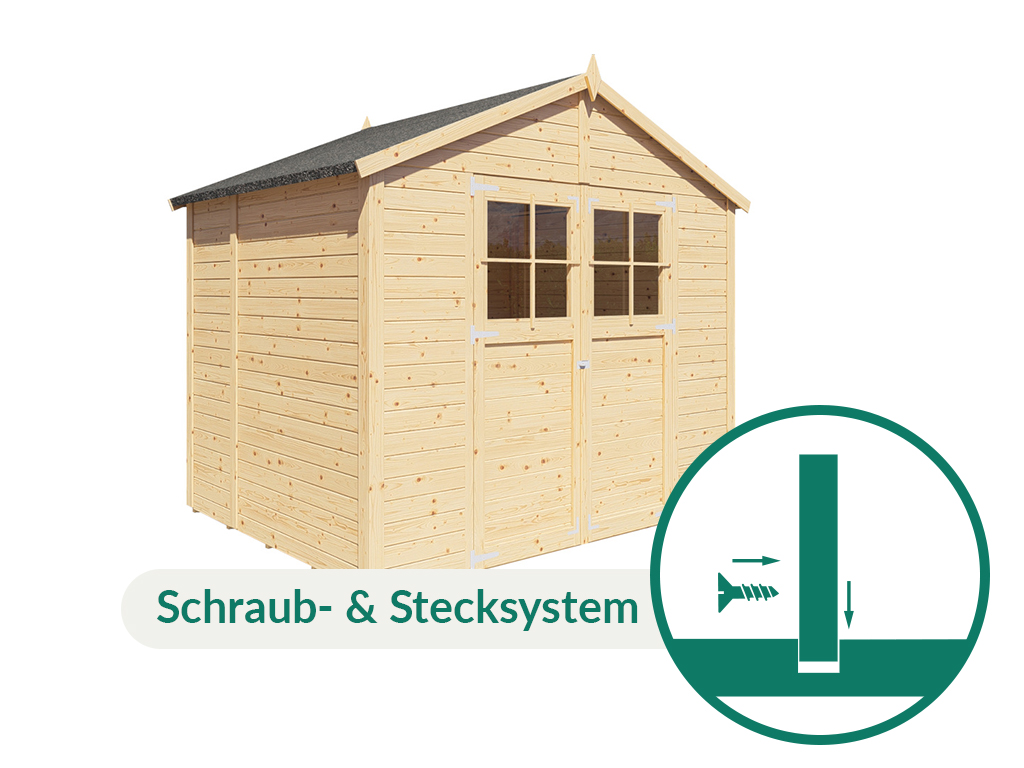 Cet abri de jardin est particulièrement facile à monter, et ce grâce à des éléments préfabriqués. Ici, les murs ne sont en effet pas constitués de madriers individuels, mais déléments muraux préfabriqués qui se composent dun cadre en bois et de profilés en bois déjà fixés entre eux. Ces éléments muraux doivent simplement être vissés les uns aux autres, puis, une fois lélément de toit préfabriqué posé, on peut déjà profiter de cet abri de jardin pratique ! Il est également possible de personaliser labri en remplaçant certains éléments de paroi par des portes ou des fenêtres.