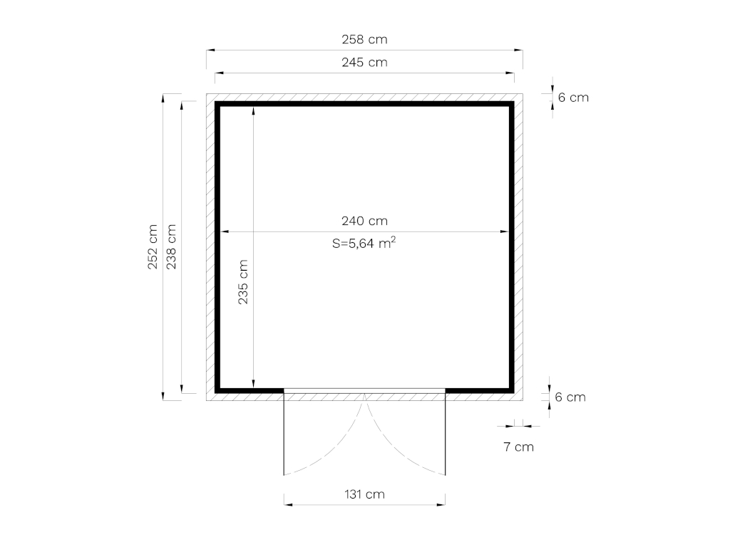 | Dimensions extérieures avec débord de toit (l x P): | 258 x 252 cm |