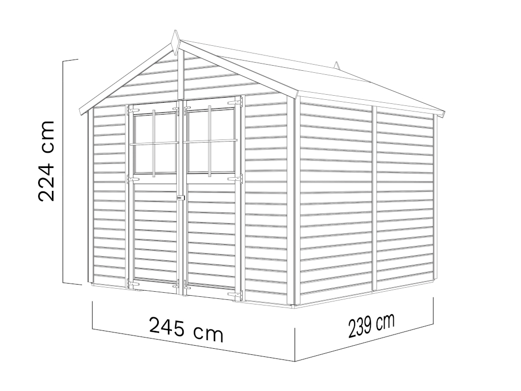 Cet abri a une surface au sol de 5,83 m². Lespace peut être utilisé de manière optimale grâce à une hauteur de faîtage de 223 cm.