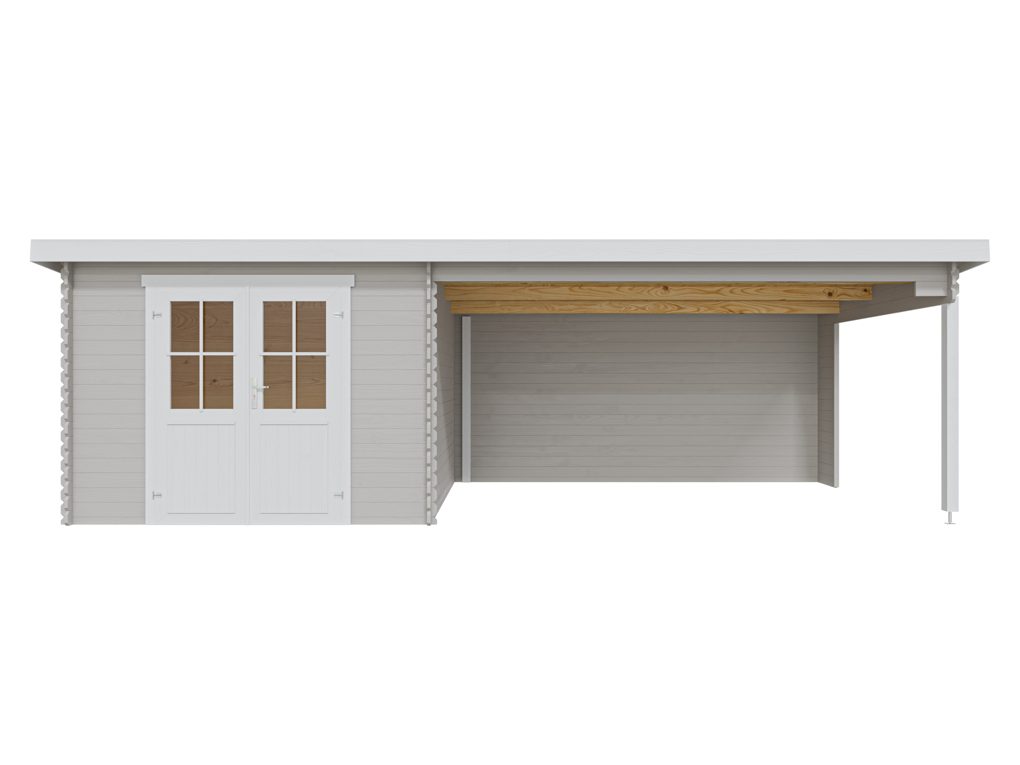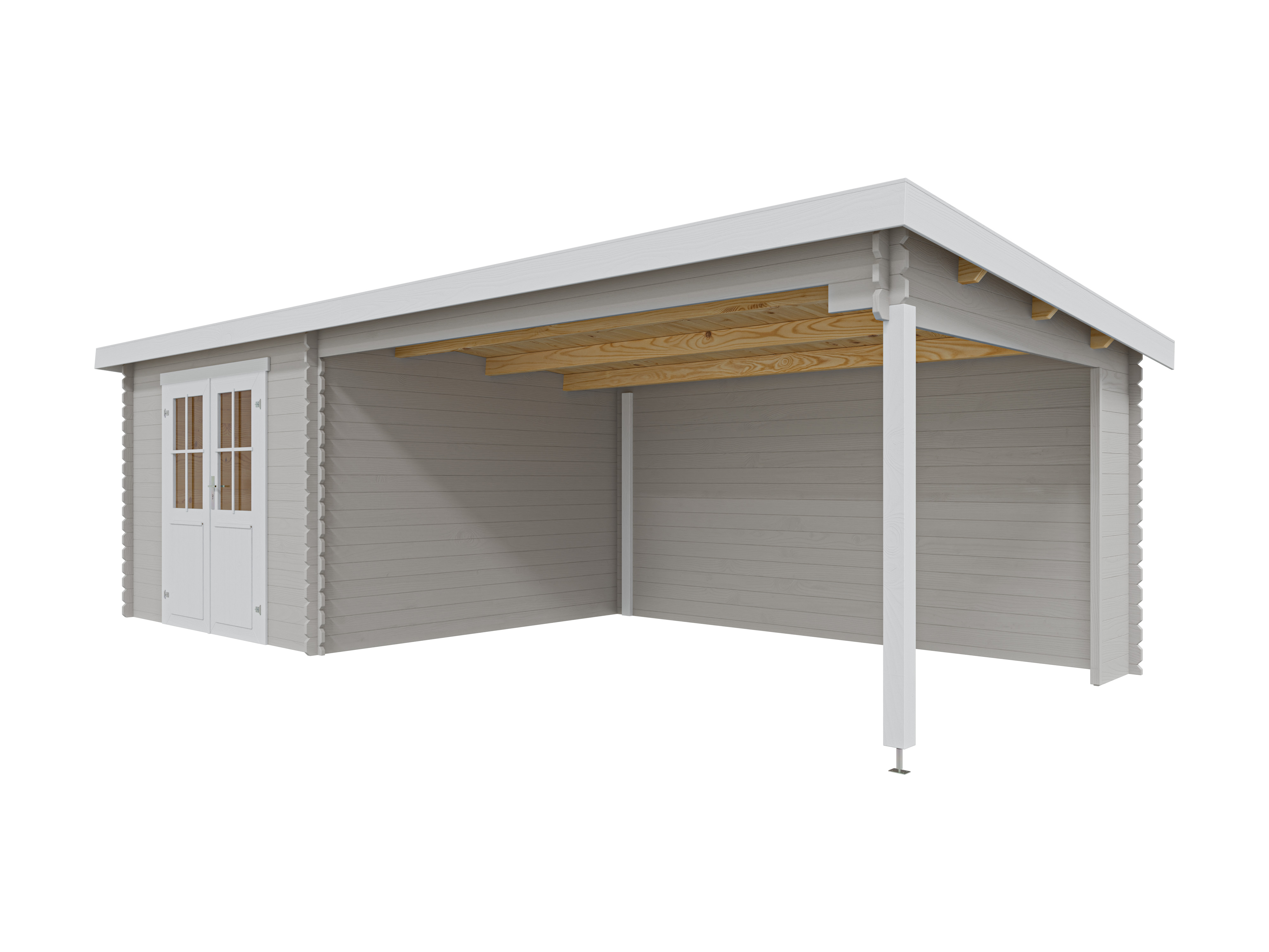Abri de jardin en rondins Aida 800 28 mm gris clair avec extension de 3,8 m Abri de jardin en rondins Aida 800 28 mm gris...