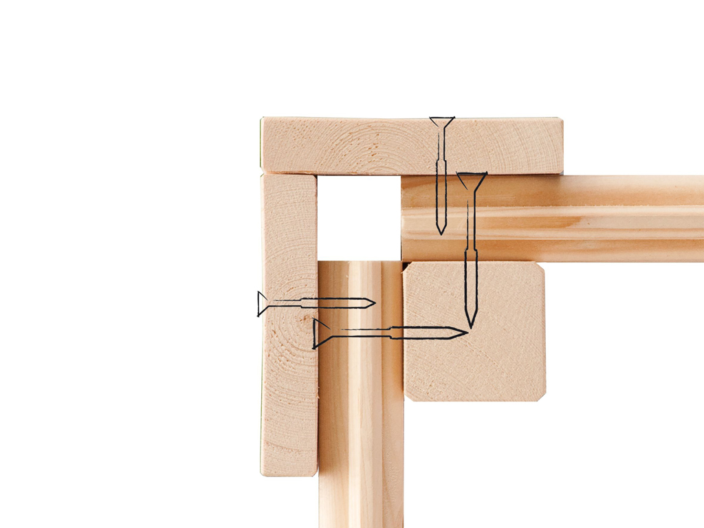 Un abri de jardin avec système de construction est une alternative avantageuse à la construction en rondins. Dans ce type de construction également, des profilés en bois déjà préfabriqués sont emboîtés les uns sur les autres par un assemblage à rainure et languette. Contrairement à la construction en rondins, la construction modulaire ne comporte pas d'encoches à la tête de l'abri de jardin. Au lieu de cela, les rondins sont maintenus ensemble par un cadre en bois intérieur. Les coins sont cachés par des moulures placées de chant. Cela rend le montage et le démontage particulièrement faciles et simples. Il est également avantageux de pouvoir installer des fenêtres et des portes ultérieurement.