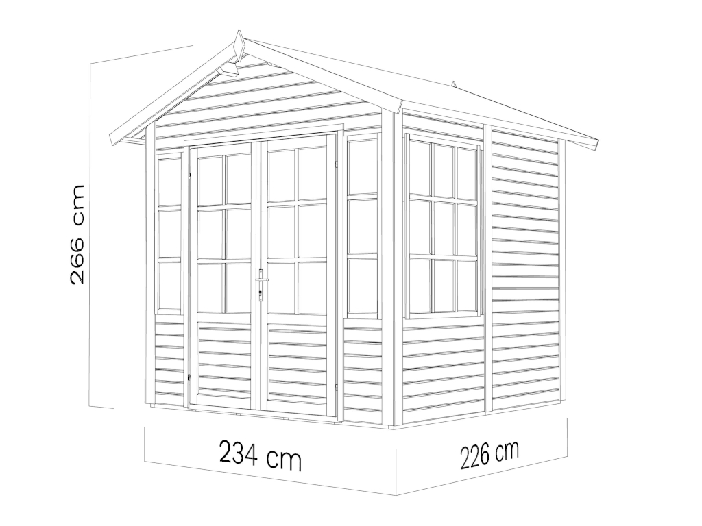 L x P x H : 234 x 226 x 266 cm, avec plancher