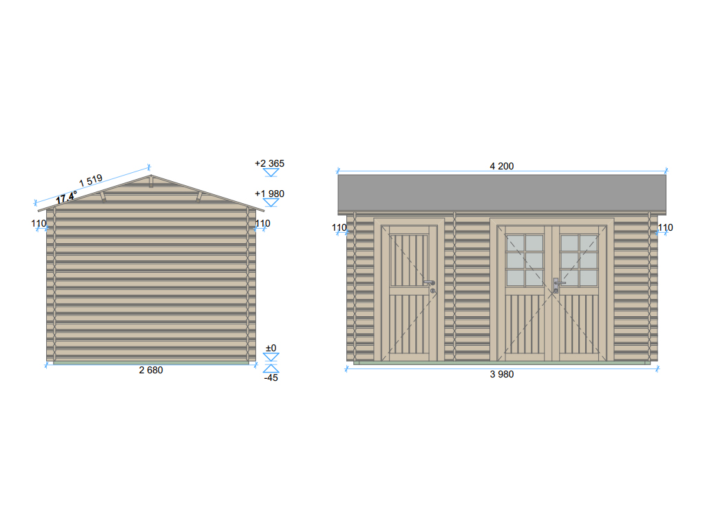 | Dimensions extérieures avec débord de toit (l x P): | 420 x 290 cm |