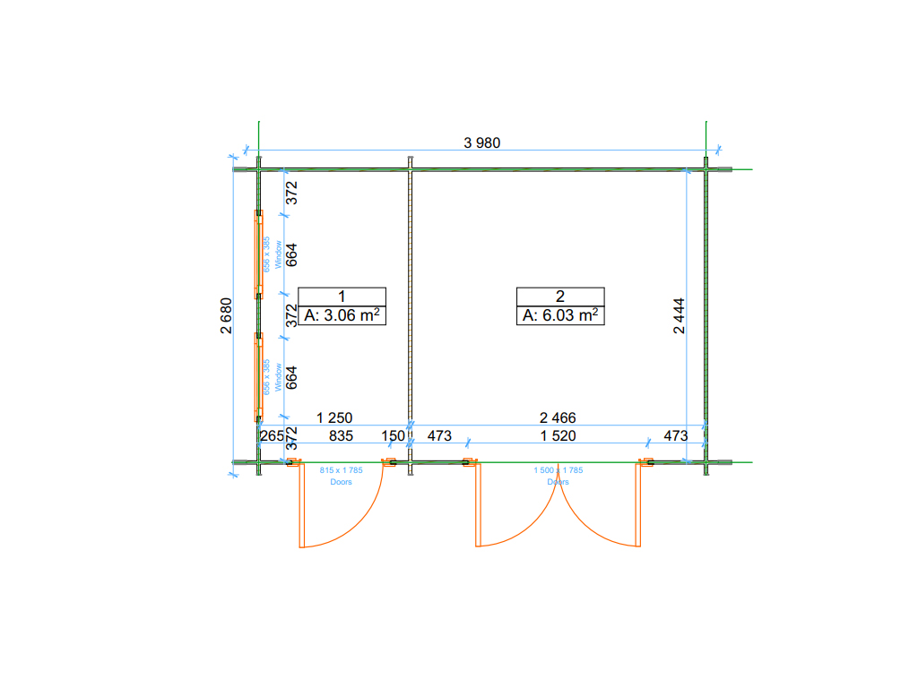 | Dimensions intérieures 2. Pièce (l x P): | 124,4 x 244,4 cm |