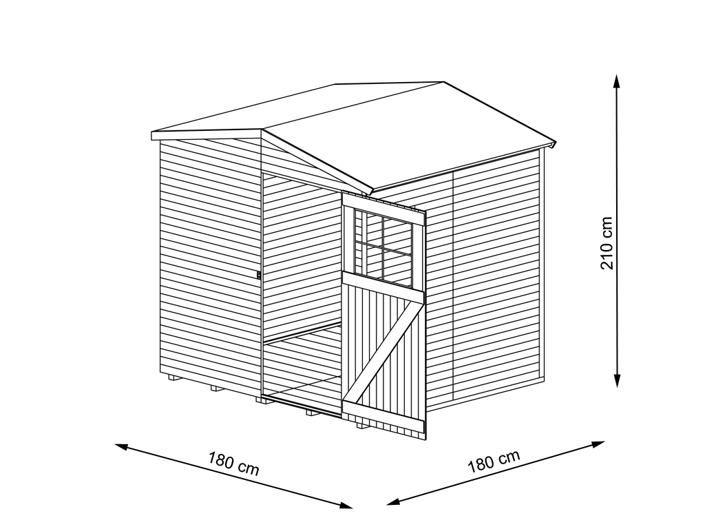 L x P x H : 180 x 180 x 210 cm, porte simple, avec plancher
