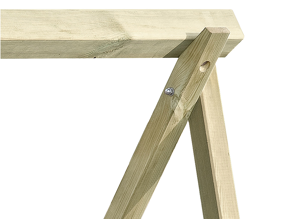 Cette aire de jeu est en bois. Cette matière naturelle est parfaite pour les équipements de jeu pour enfants - résistante et durable. Les poteaux de l'aire de jeu mesurent 7 x 7 cm, assurant ainsi une construction de base particulièrement stable.
