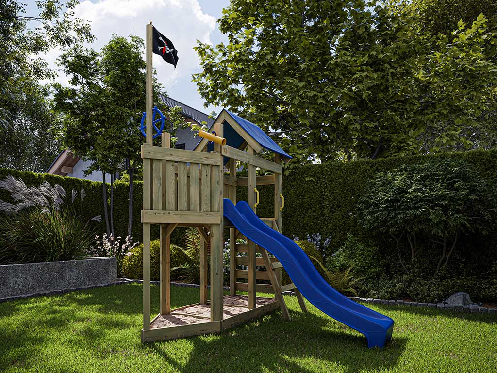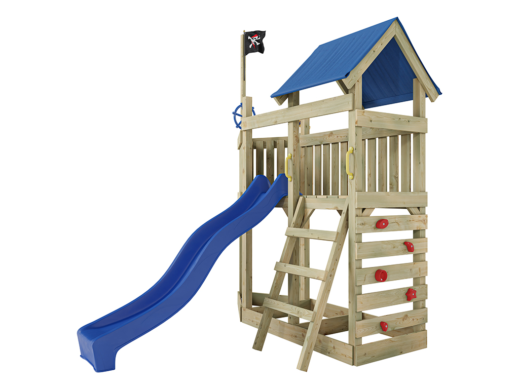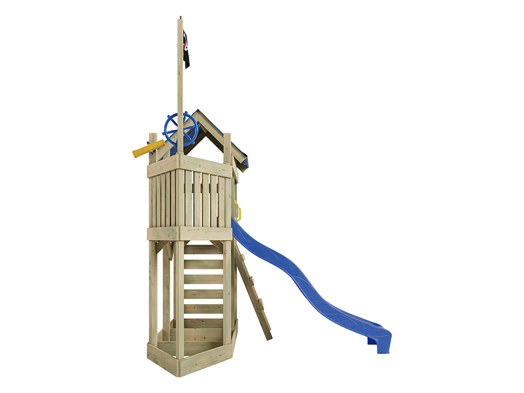 Aire de jeu Captain Snappy en bois autoclave avec toboggan bleu