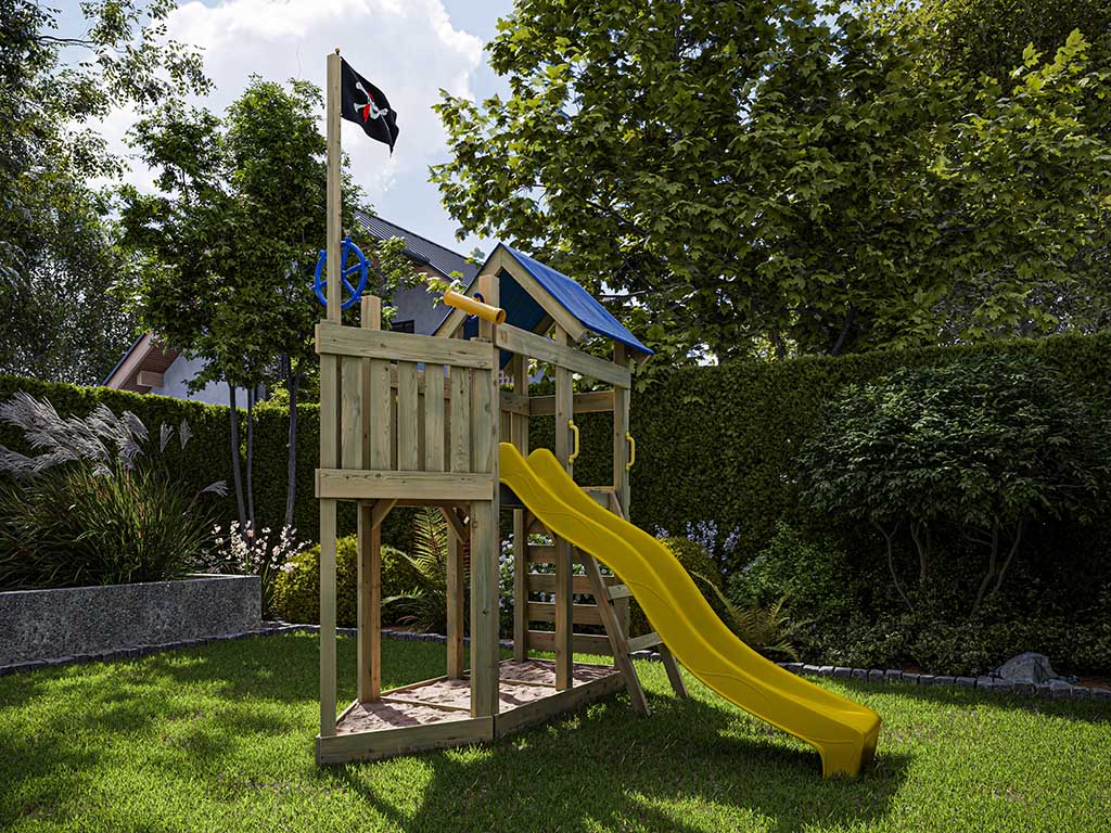 Aire de jeu Captain Snappy en bois autoclave avec toboggan jaune