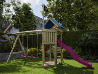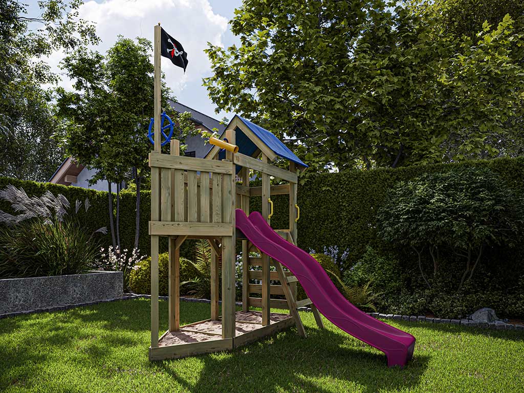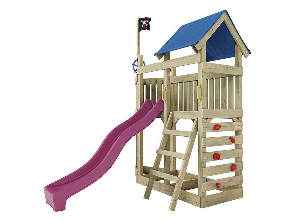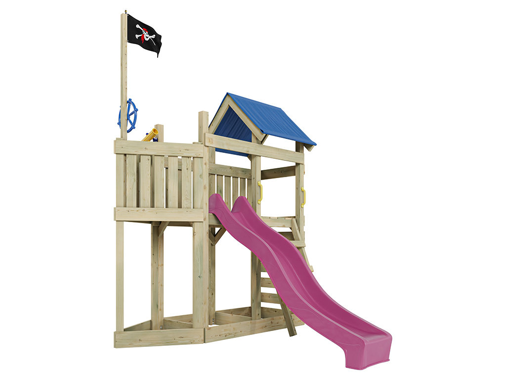Aire de jeu Captain Snappy en bois autoclave avec toboggan rose