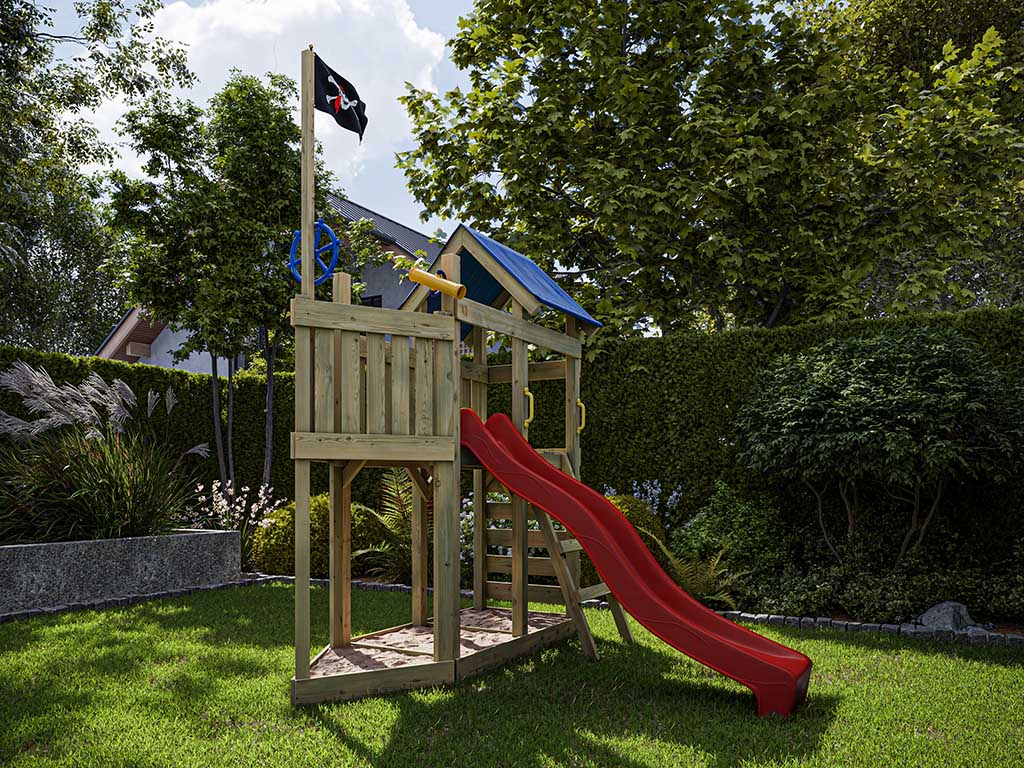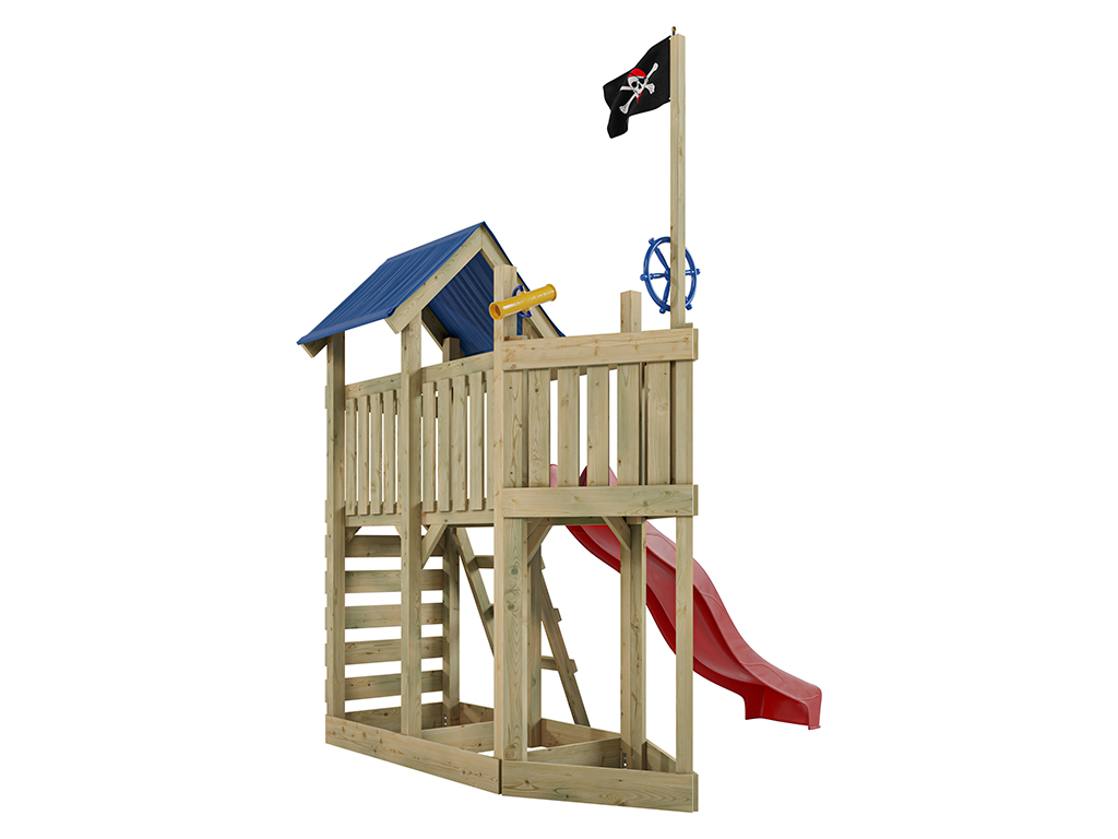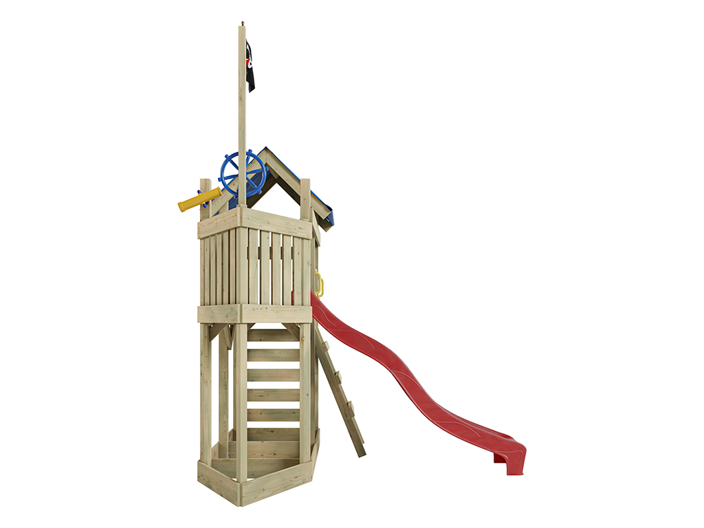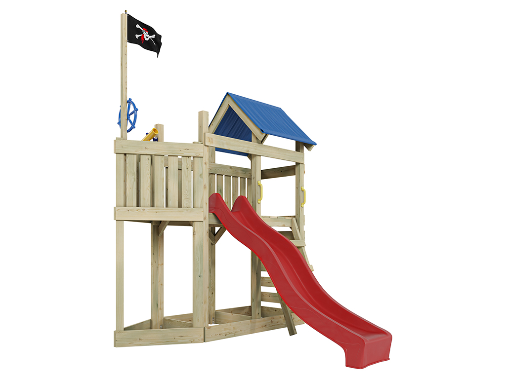 Aire de jeu Captain Snappy en bois autoclave avec toboggan rouge