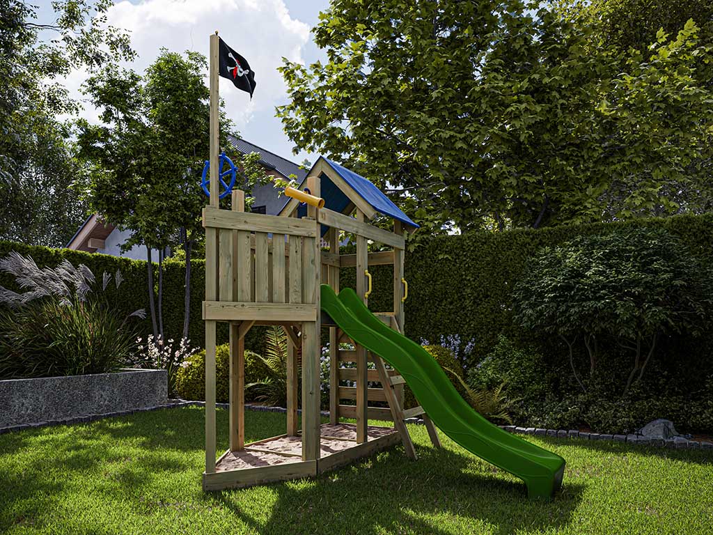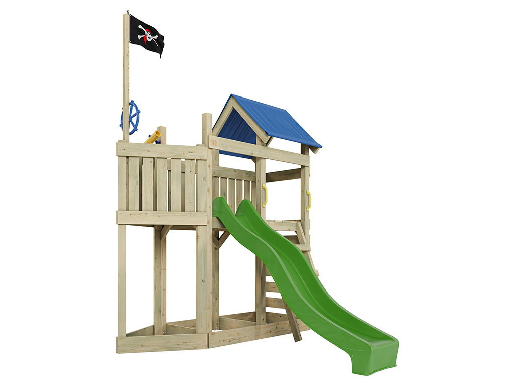 Aire de jeu Captain Snappy en bois autoclave avec toboggan vert